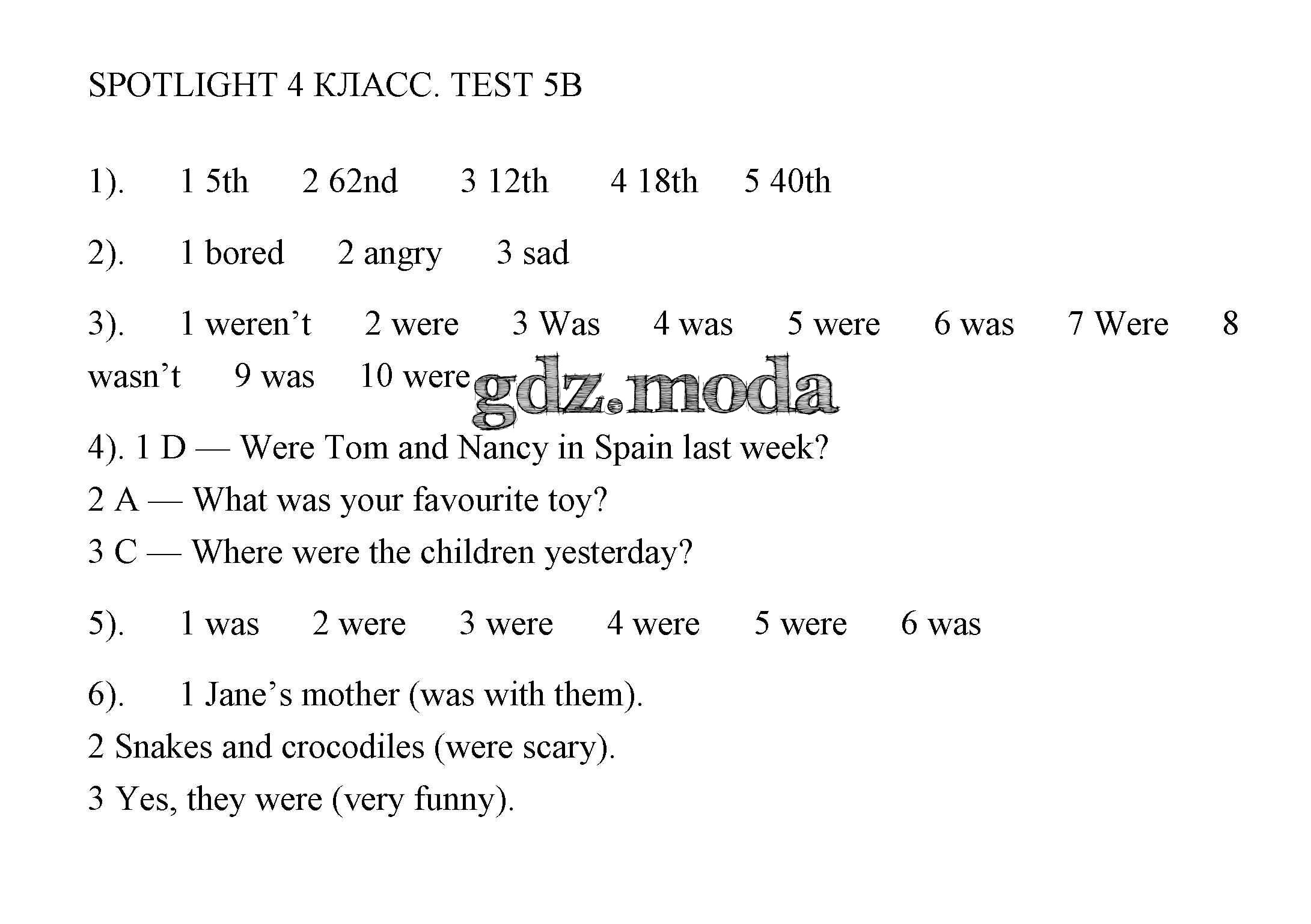 ОТВЕТ на задание № 5B Контрольные работы по Английскому языку 4 класс Быкова Spotlight