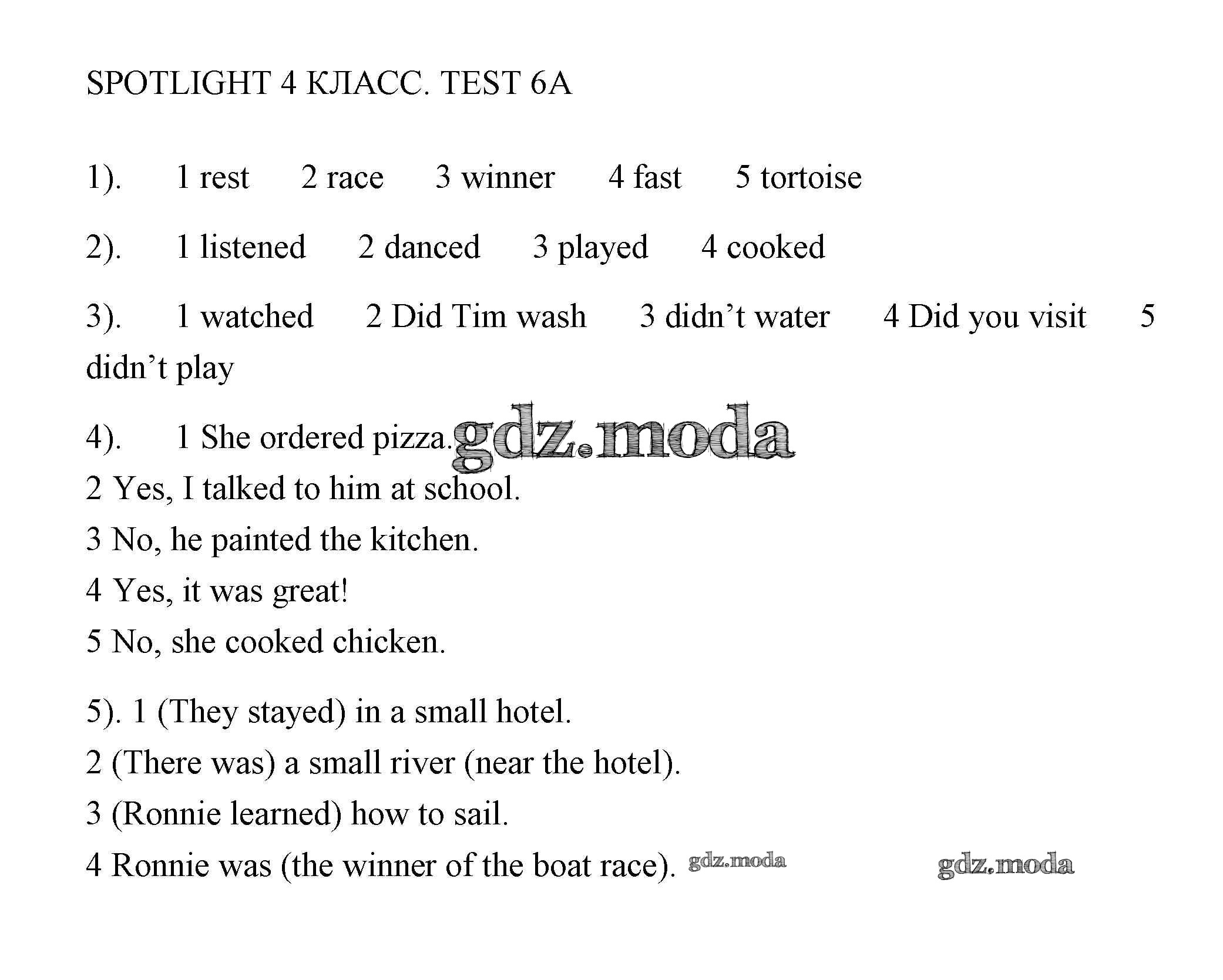 ОТВЕТ на задание № 6A Контрольные работы по Английскому языку 4 класс Быкова Spotlight