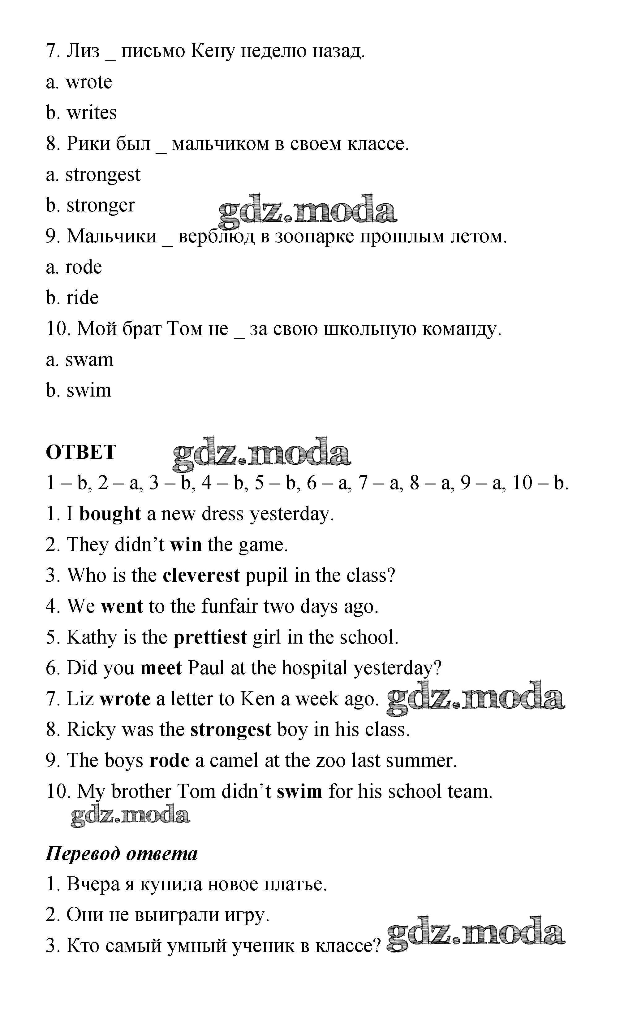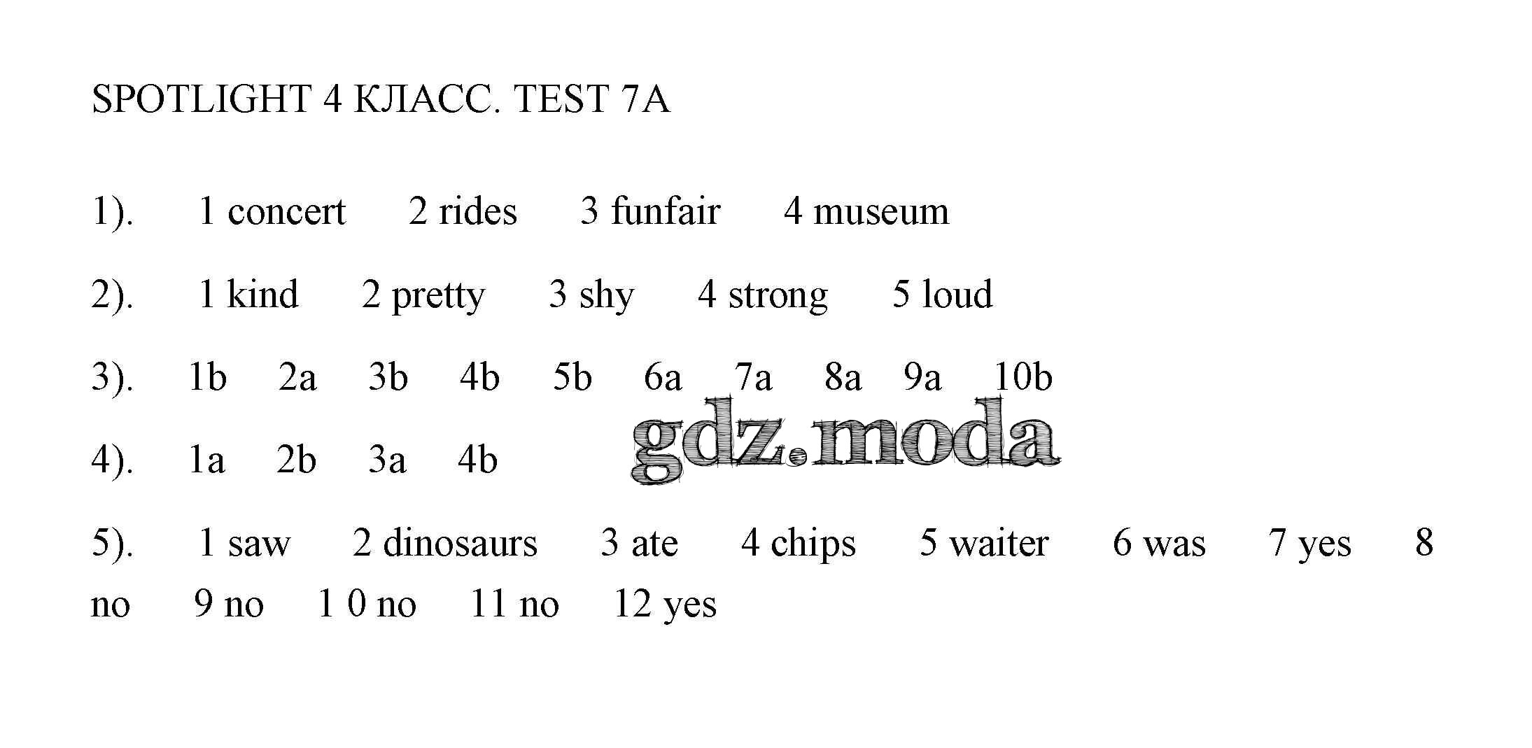 ОТВЕТ на задание № 7A Контрольные работы по Английскому языку 4 класс Быкова Spotlight