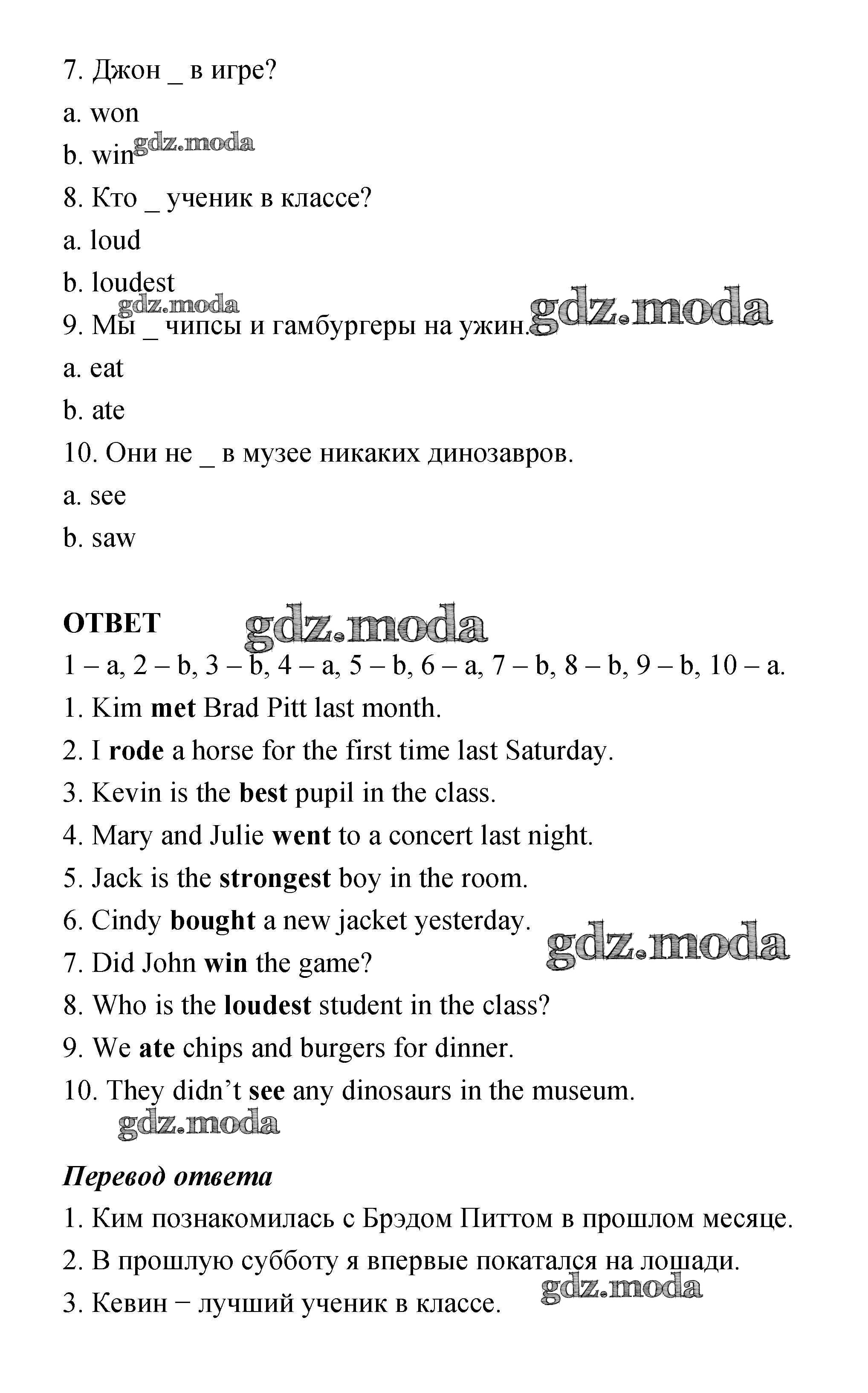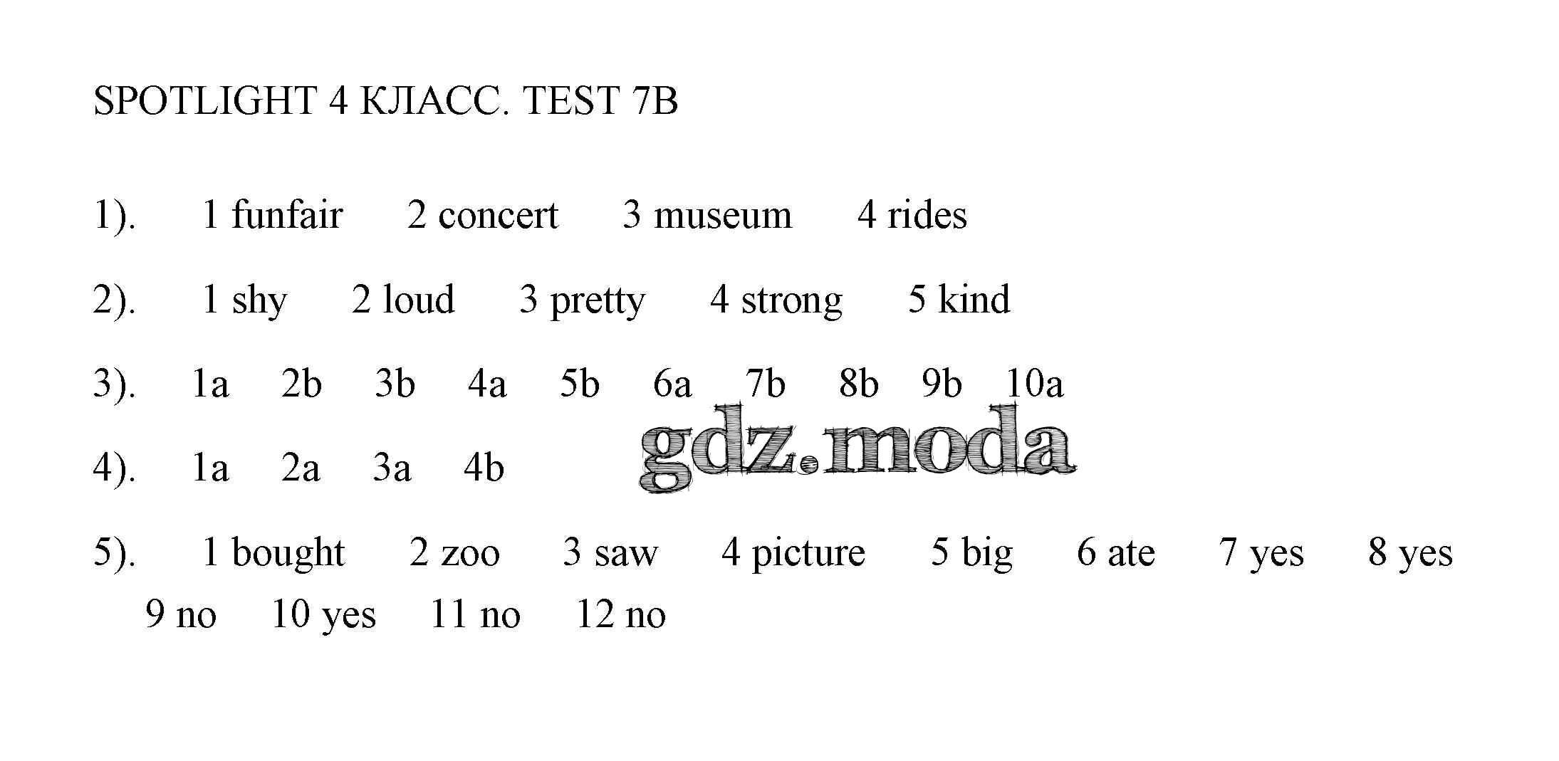 ОТВЕТ на задание № 7B Контрольные работы по Английскому языку 4 класс Быкова Spotlight