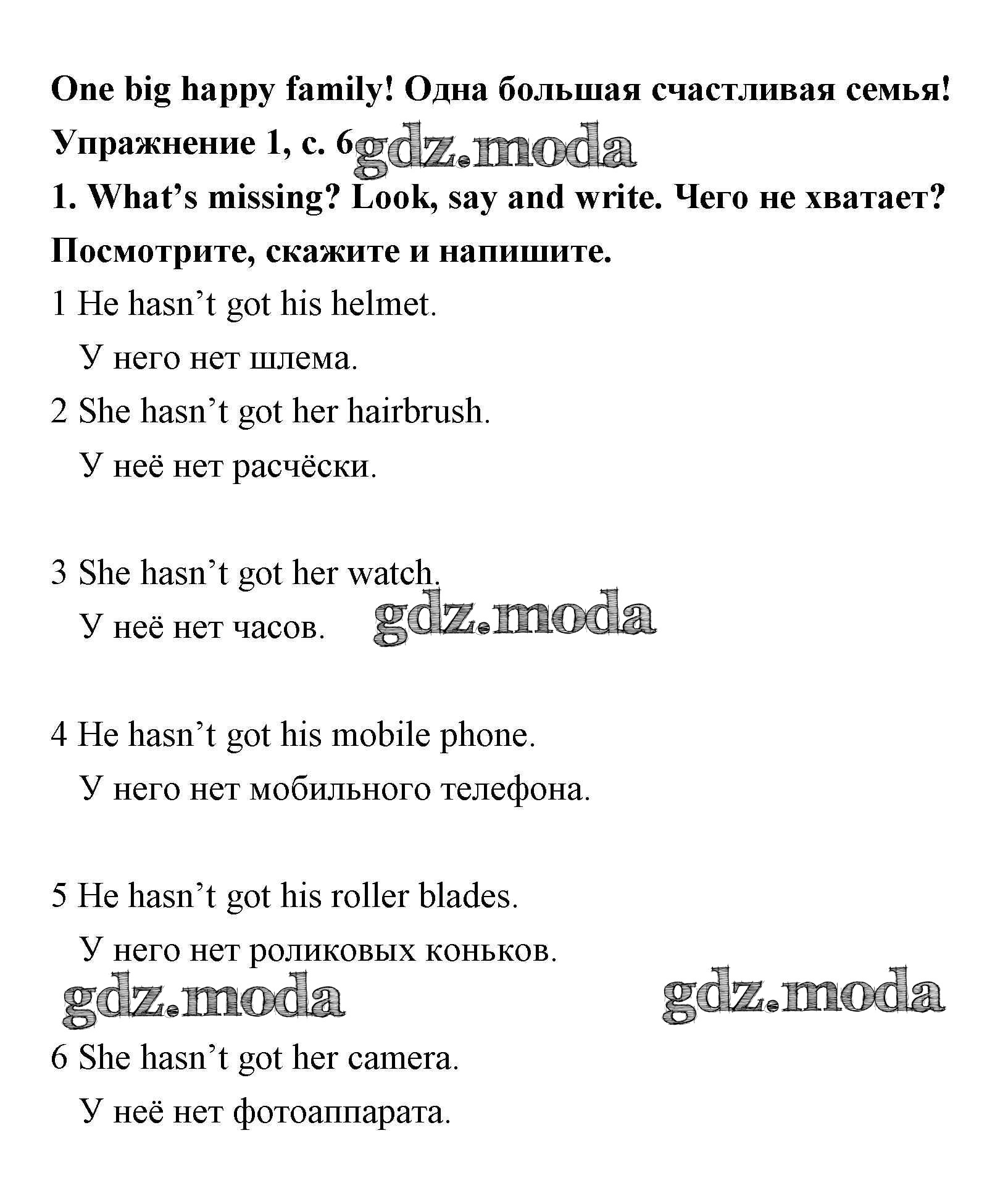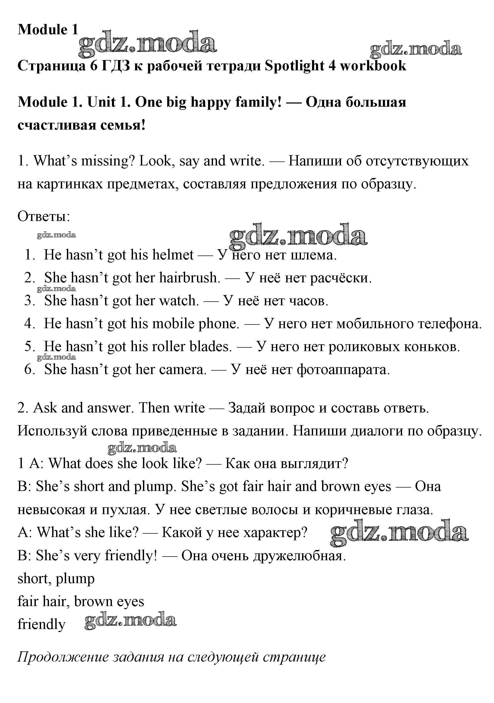 ОТВЕТ на задание № страница 6 Рабочая тетрадь по Английскому языку 4 класс Быкова Spotlight