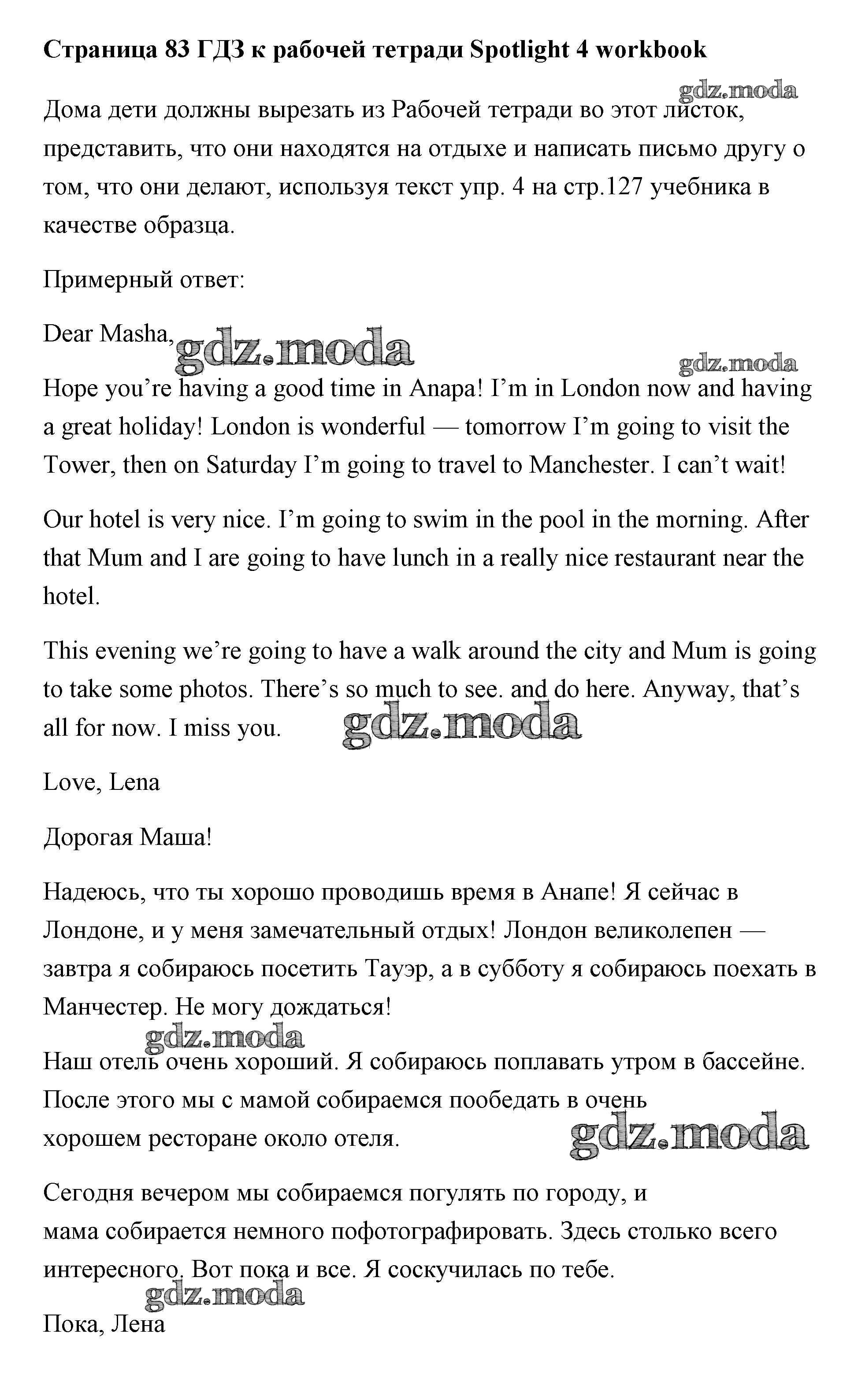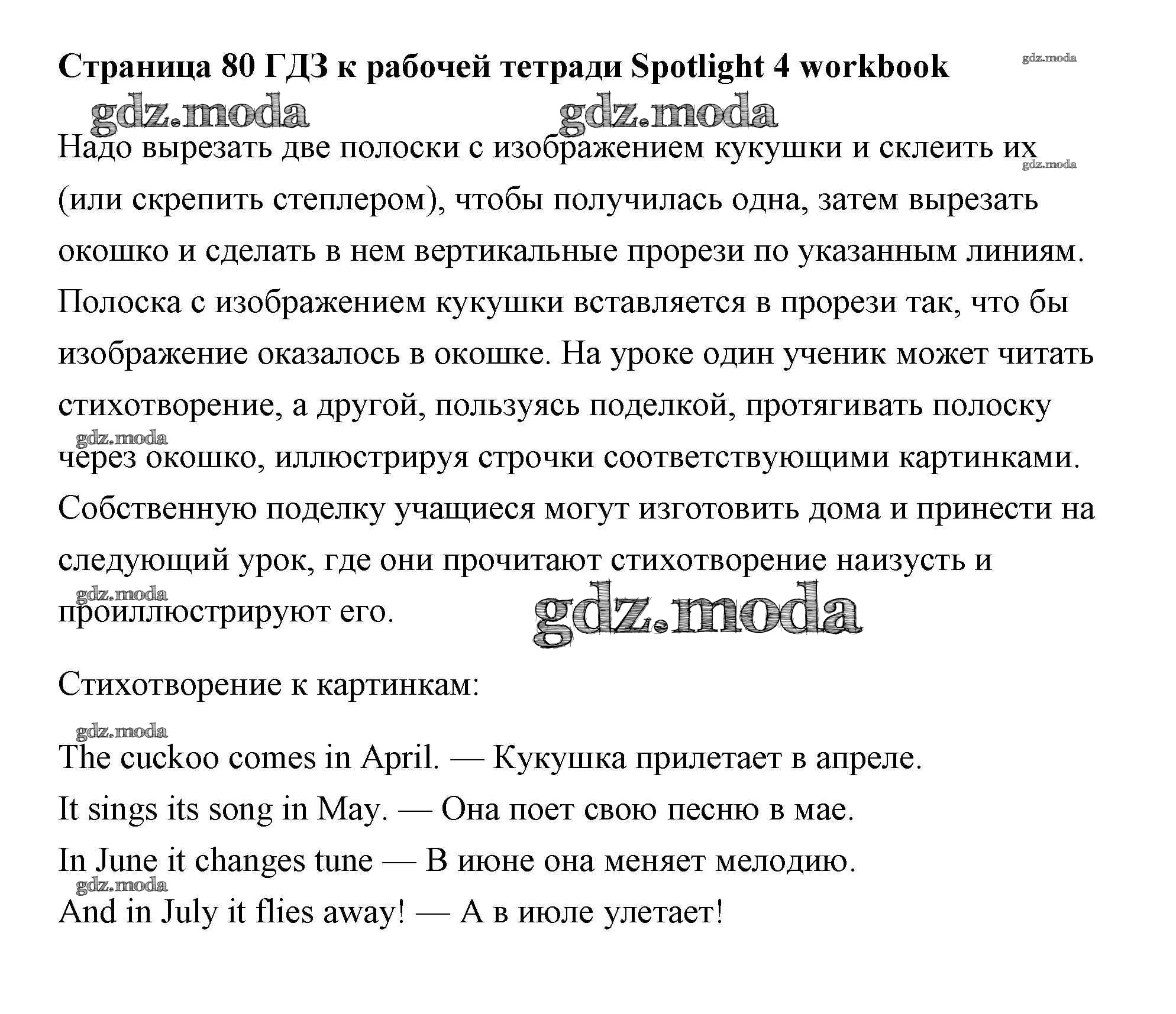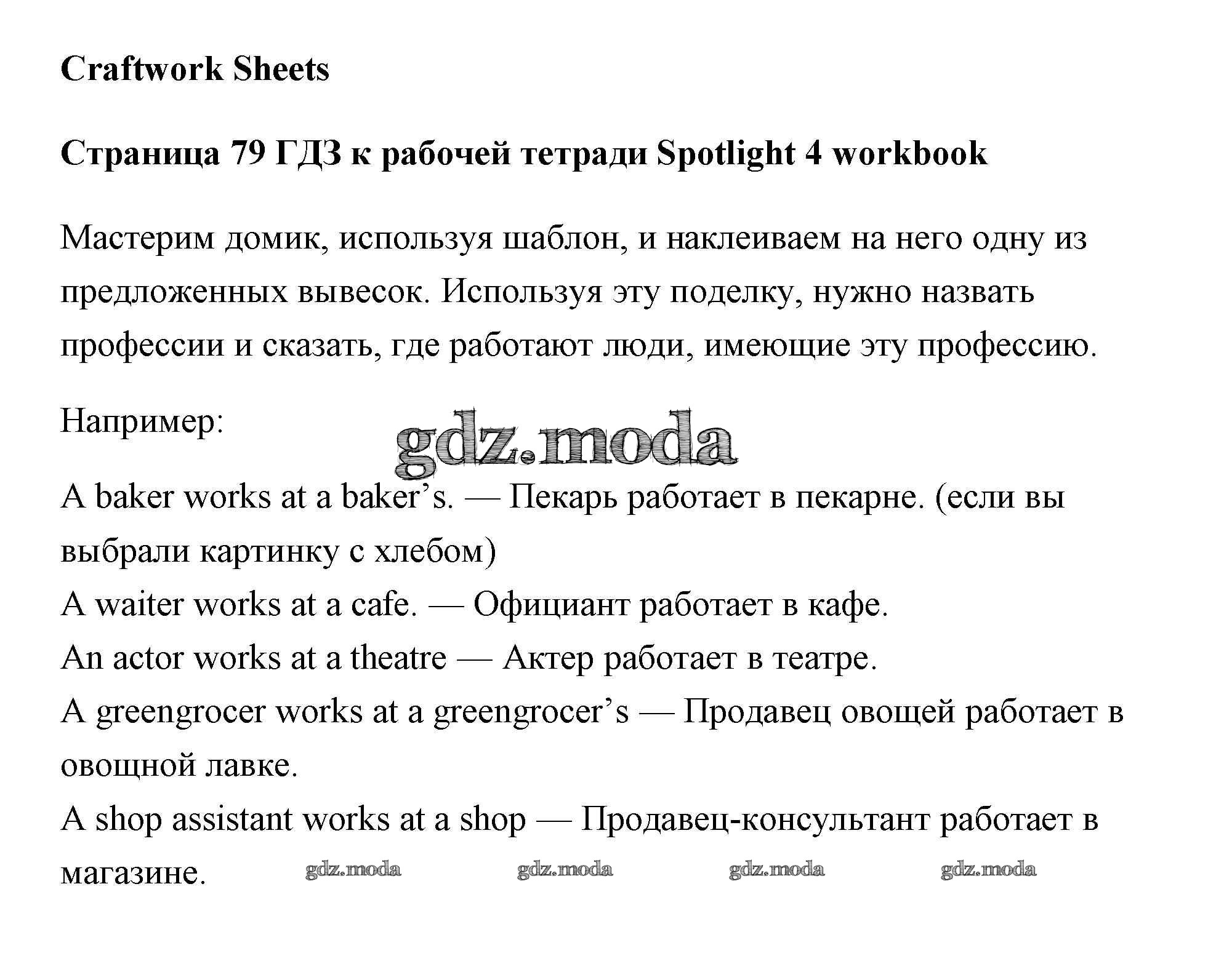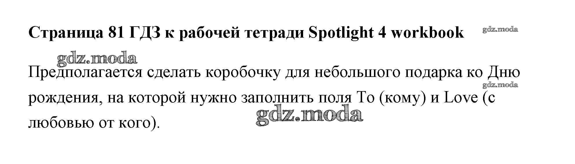 ОТВЕТ на задание № страница Рабочая тетрадь по Английскому языку 4 класс Быкова Spotlight
