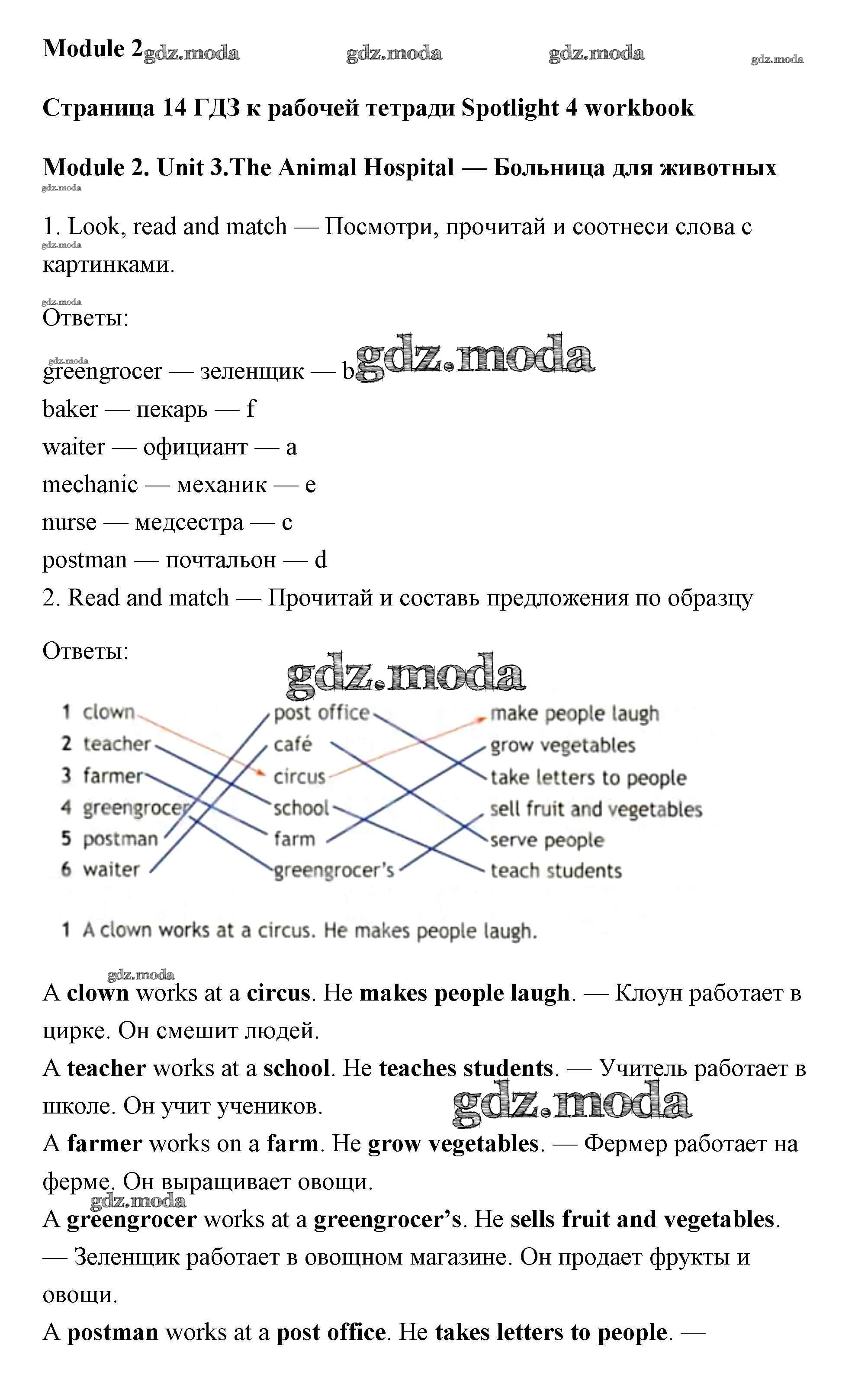 ОТВЕТ на задание № страница 14 Рабочая тетрадь по Английскому языку 4 класс Быкова Spotlight