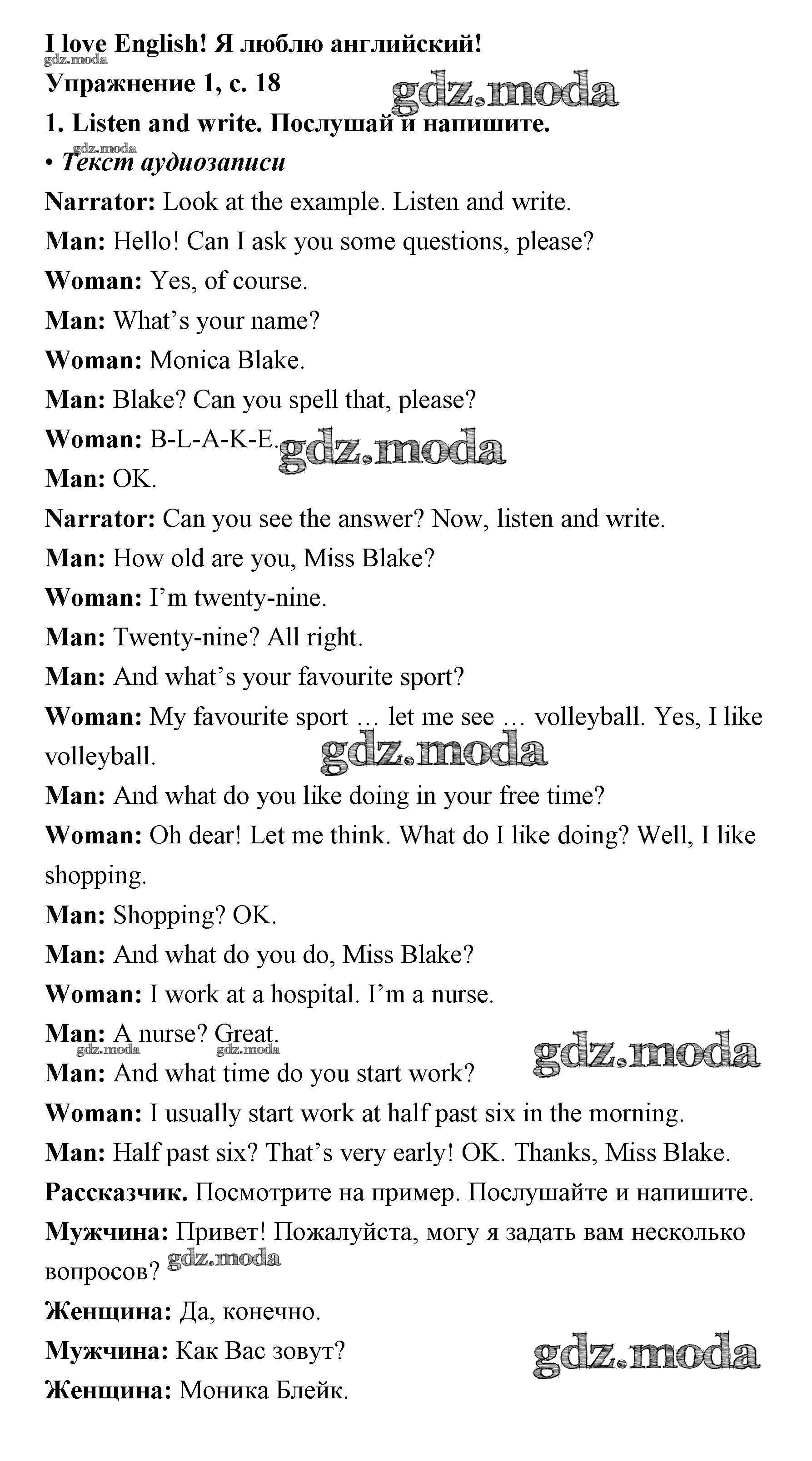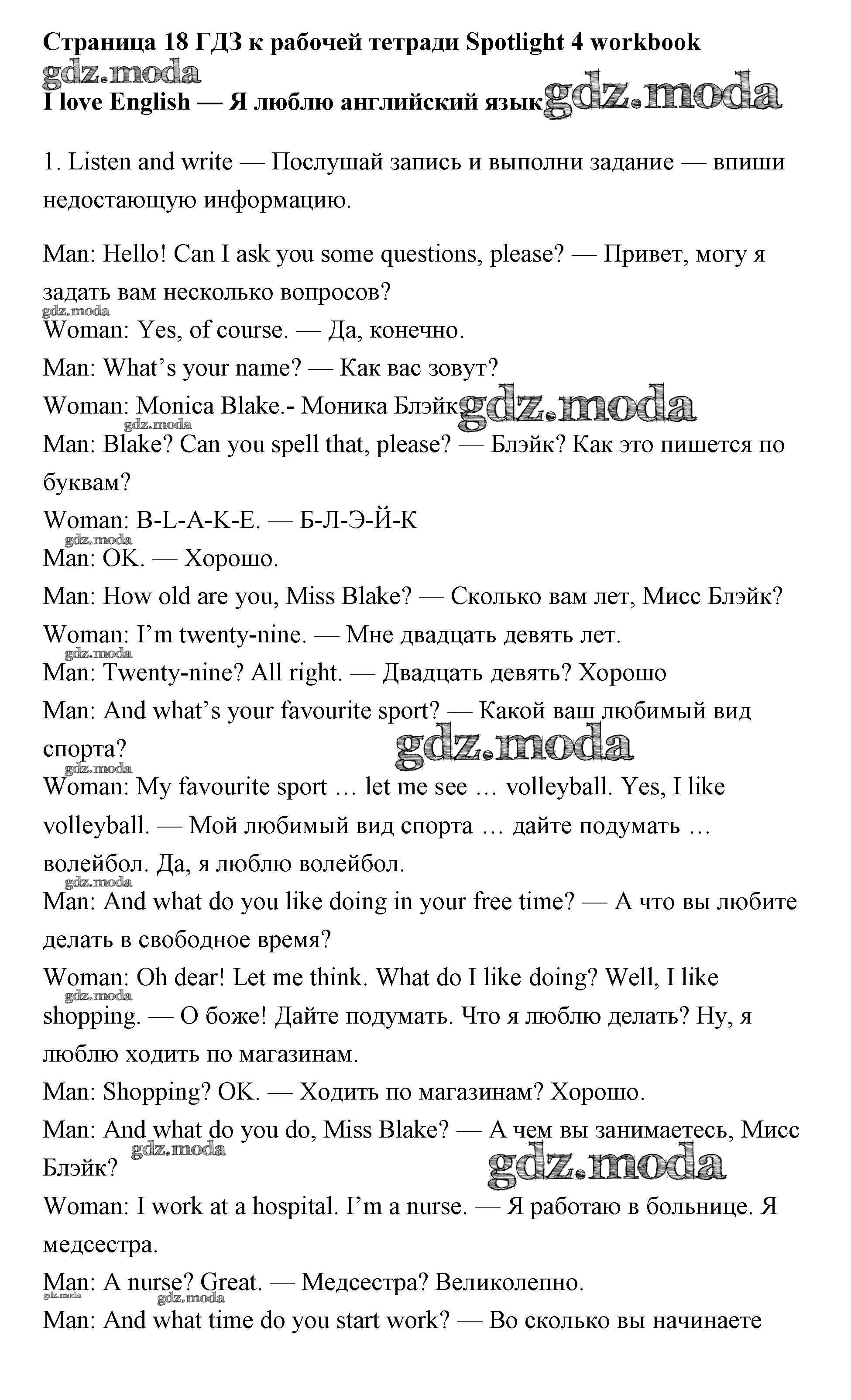 ОТВЕТ на задание № страница 18 Рабочая тетрадь по Английскому языку 4 класс Быкова Spotlight
