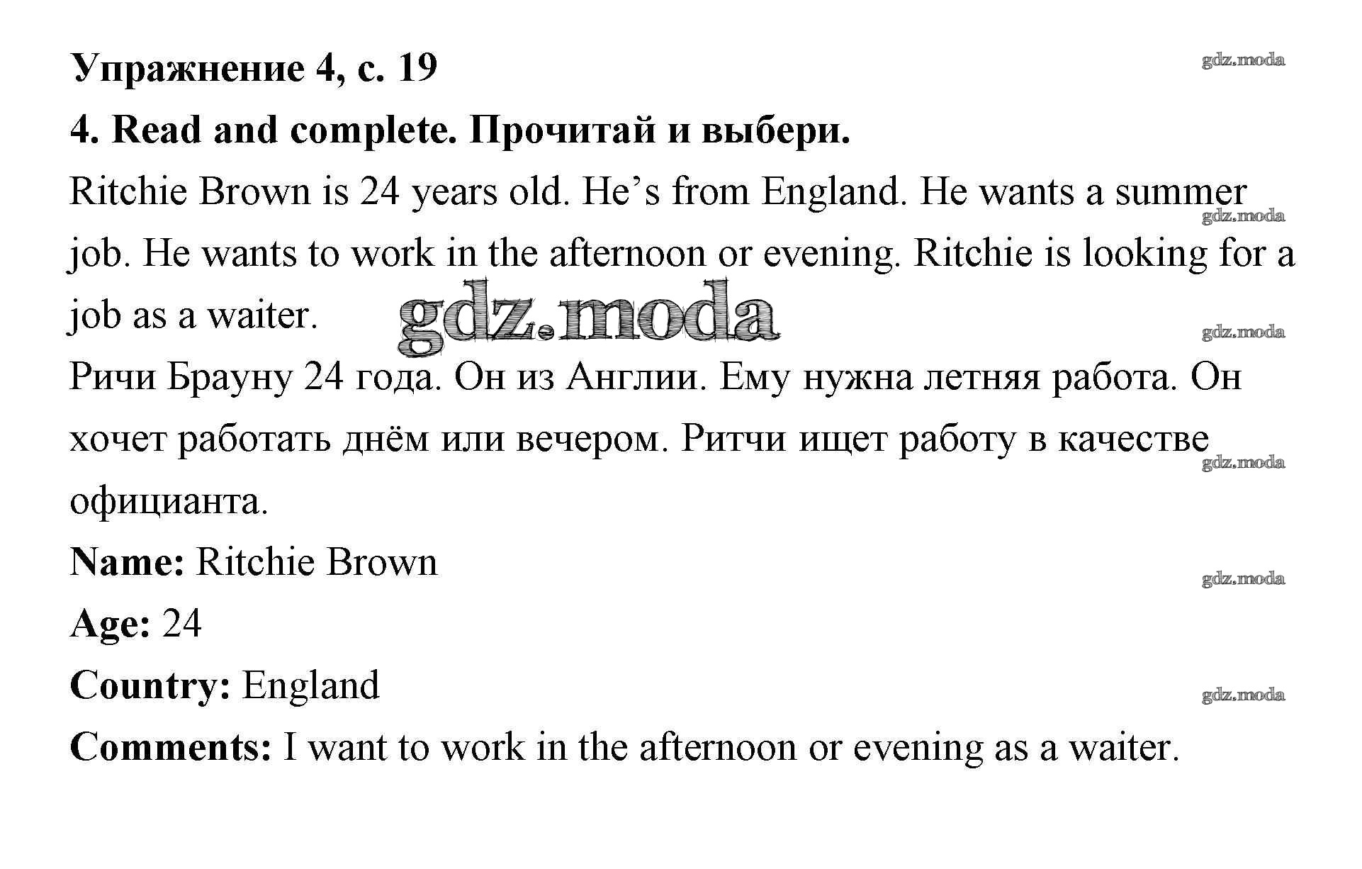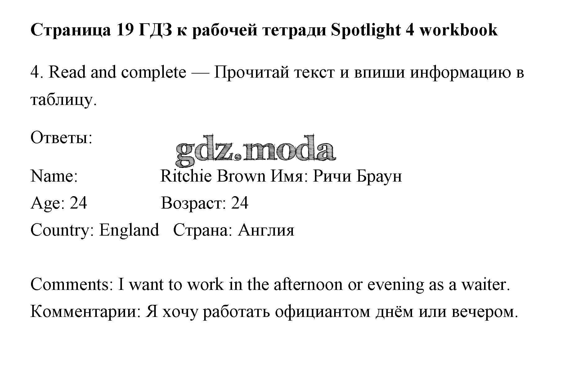 ОТВЕТ на задание № страница 19 Рабочая тетрадь по Английскому языку 4 класс Быкова Spotlight
