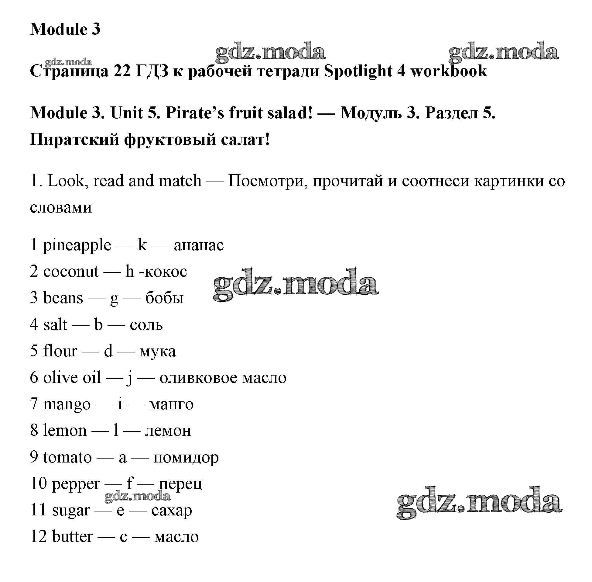 ОТВЕТ на задание № страница 22 Рабочая тетрадь по Английскому языку 4 класс Быкова Spotlight