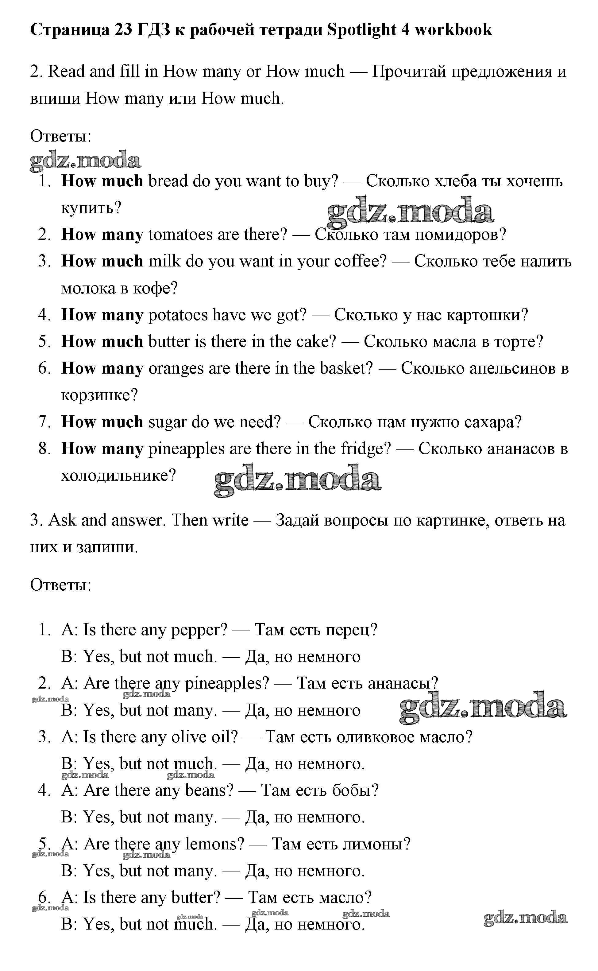 ОТВЕТ на задание № страница 23 Рабочая тетрадь по Английскому языку 4 класс Быкова Spotlight