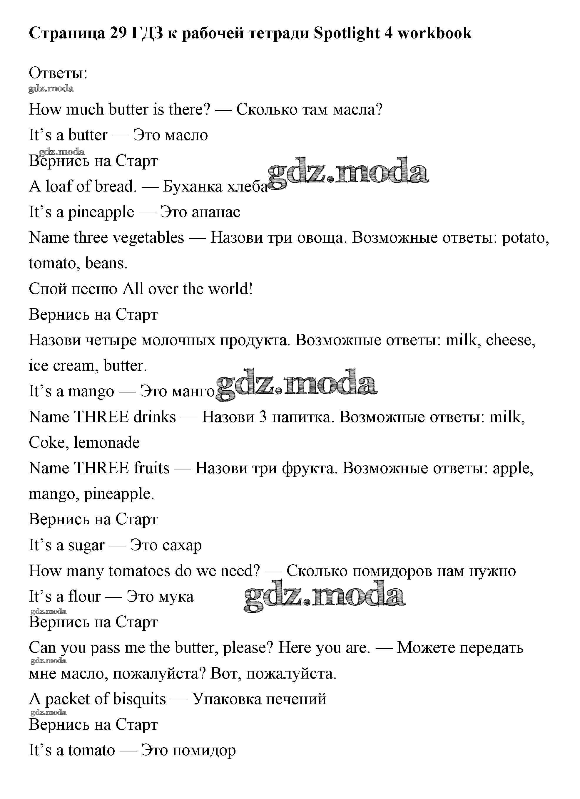 ОТВЕТ на задание № страница 29 Рабочая тетрадь по Английскому языку 4 класс Быкова Spotlight