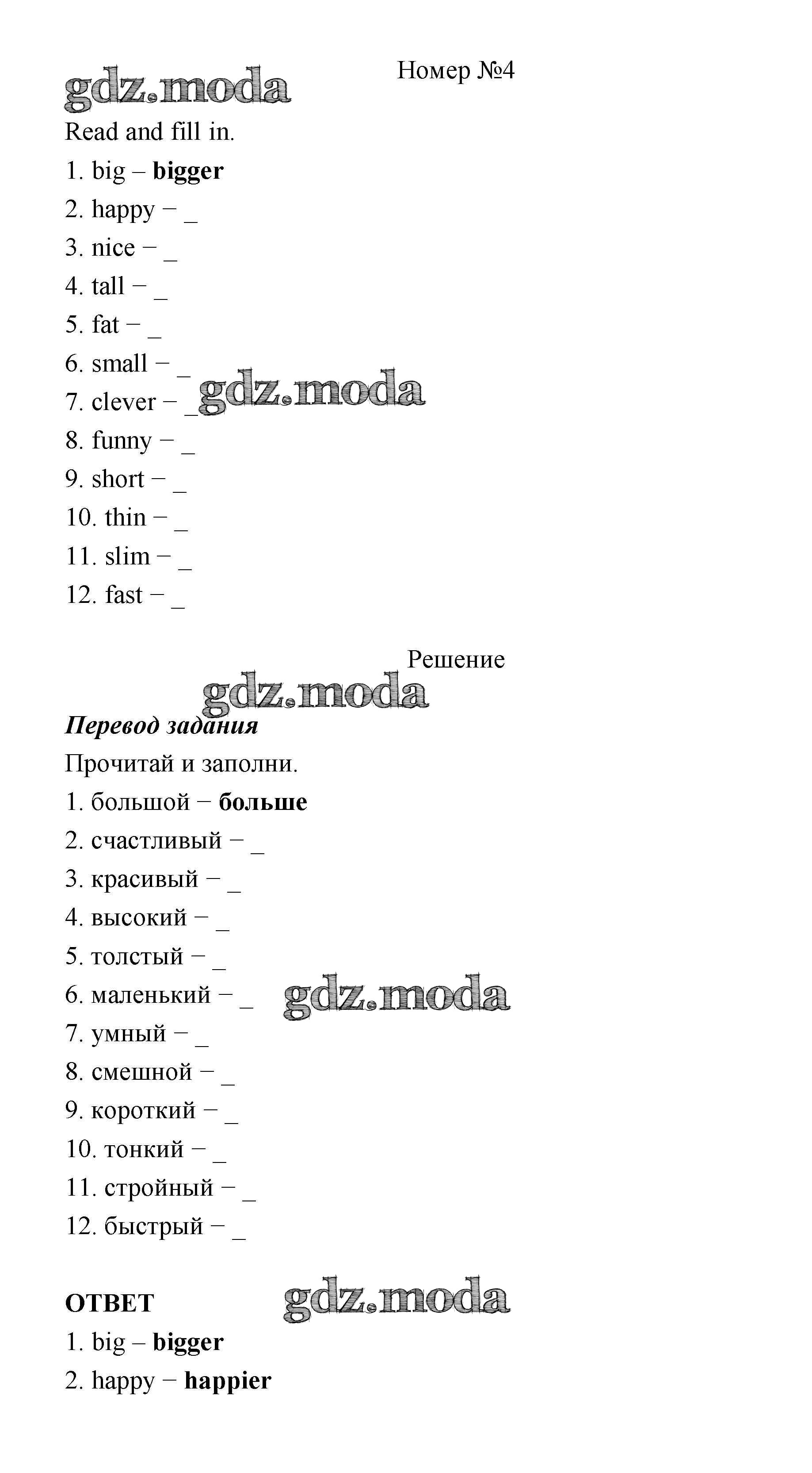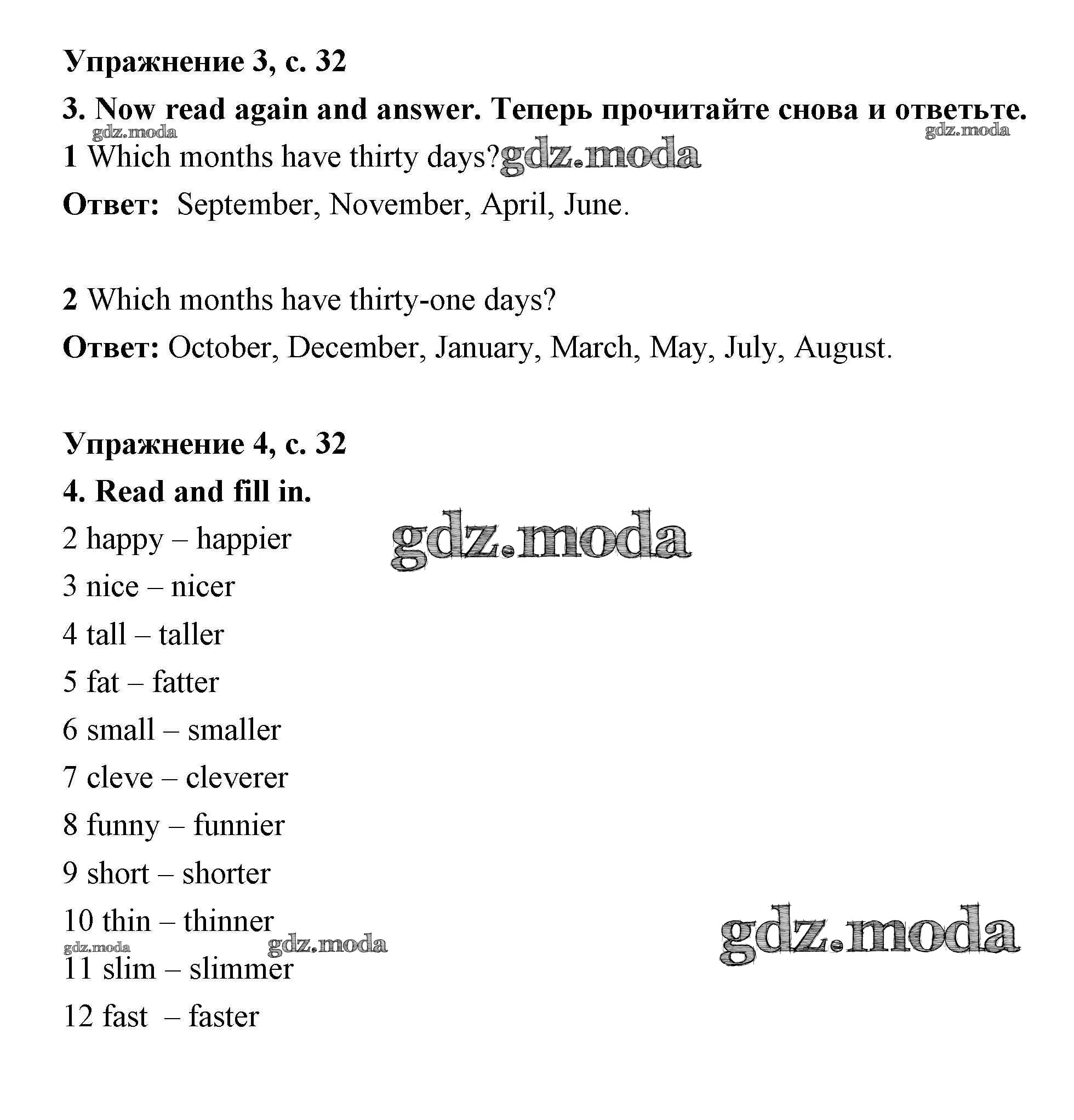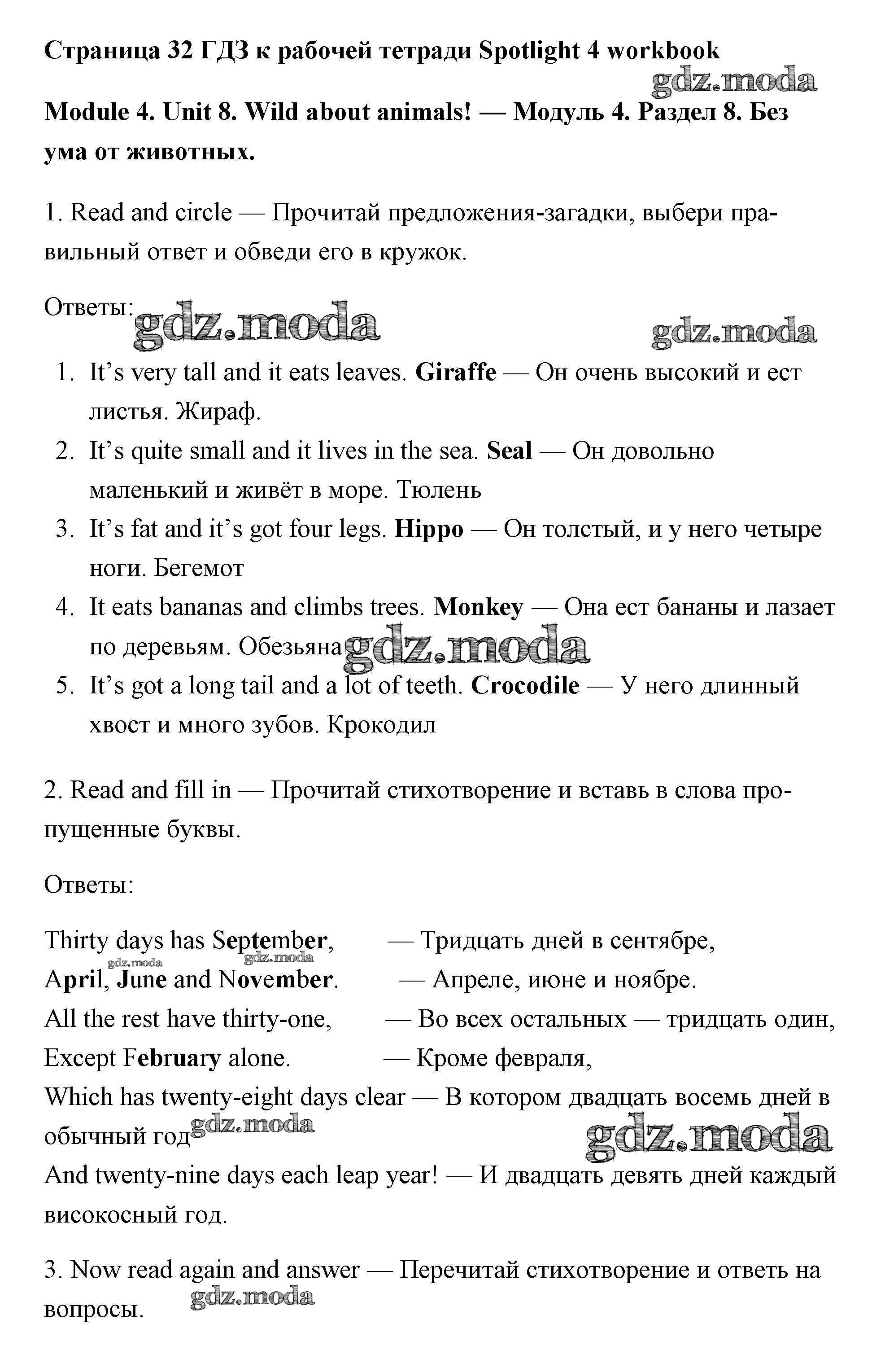 ОТВЕТ на задание № страница 32 Рабочая тетрадь по Английскому языку 4 класс Быкова Spotlight