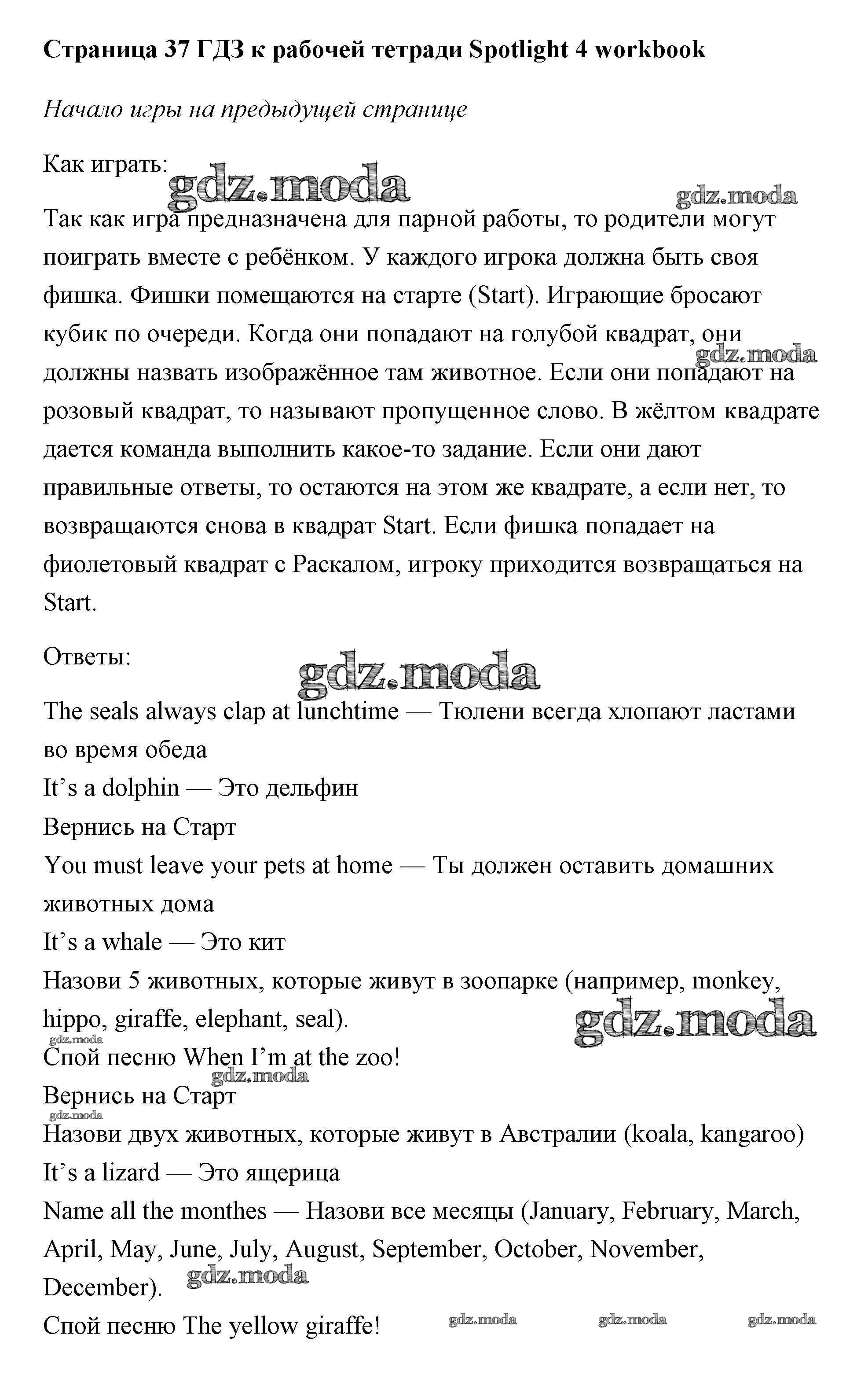 ОТВЕТ на задание № страница 37 Рабочая тетрадь по Английскому языку 4 класс Быкова Spotlight