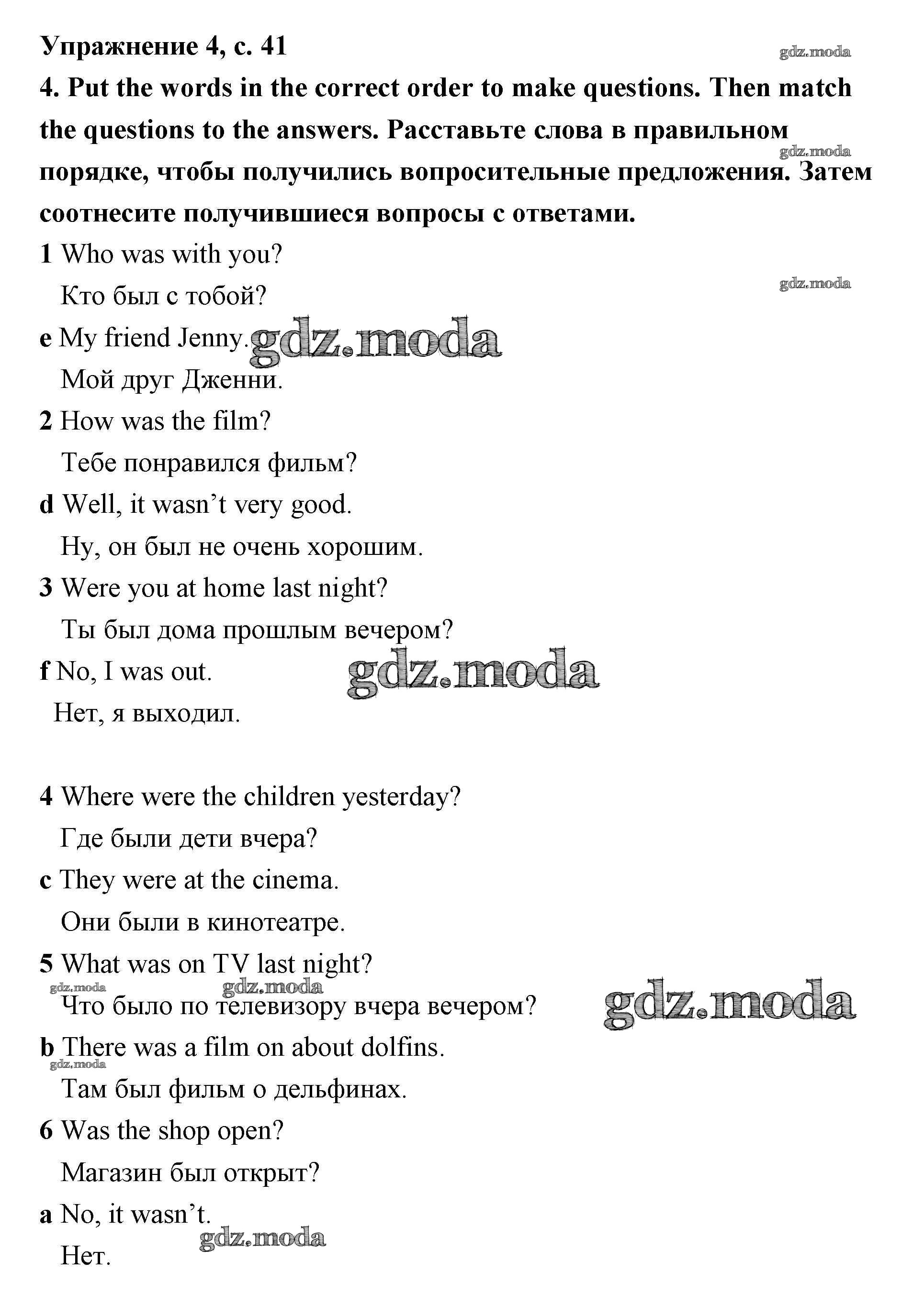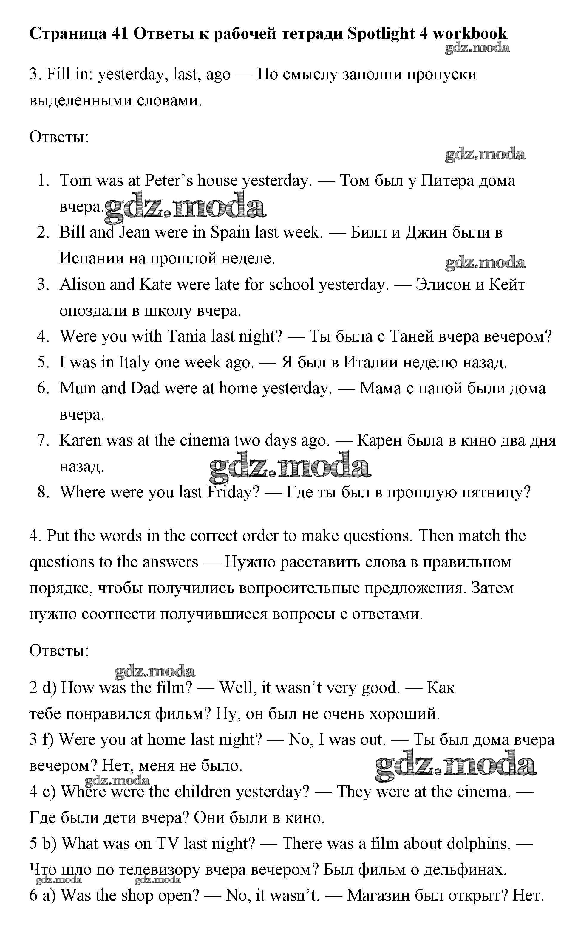 ОТВЕТ на задание № страница 41 Рабочая тетрадь по Английскому языку 4 класс Быкова Spotlight