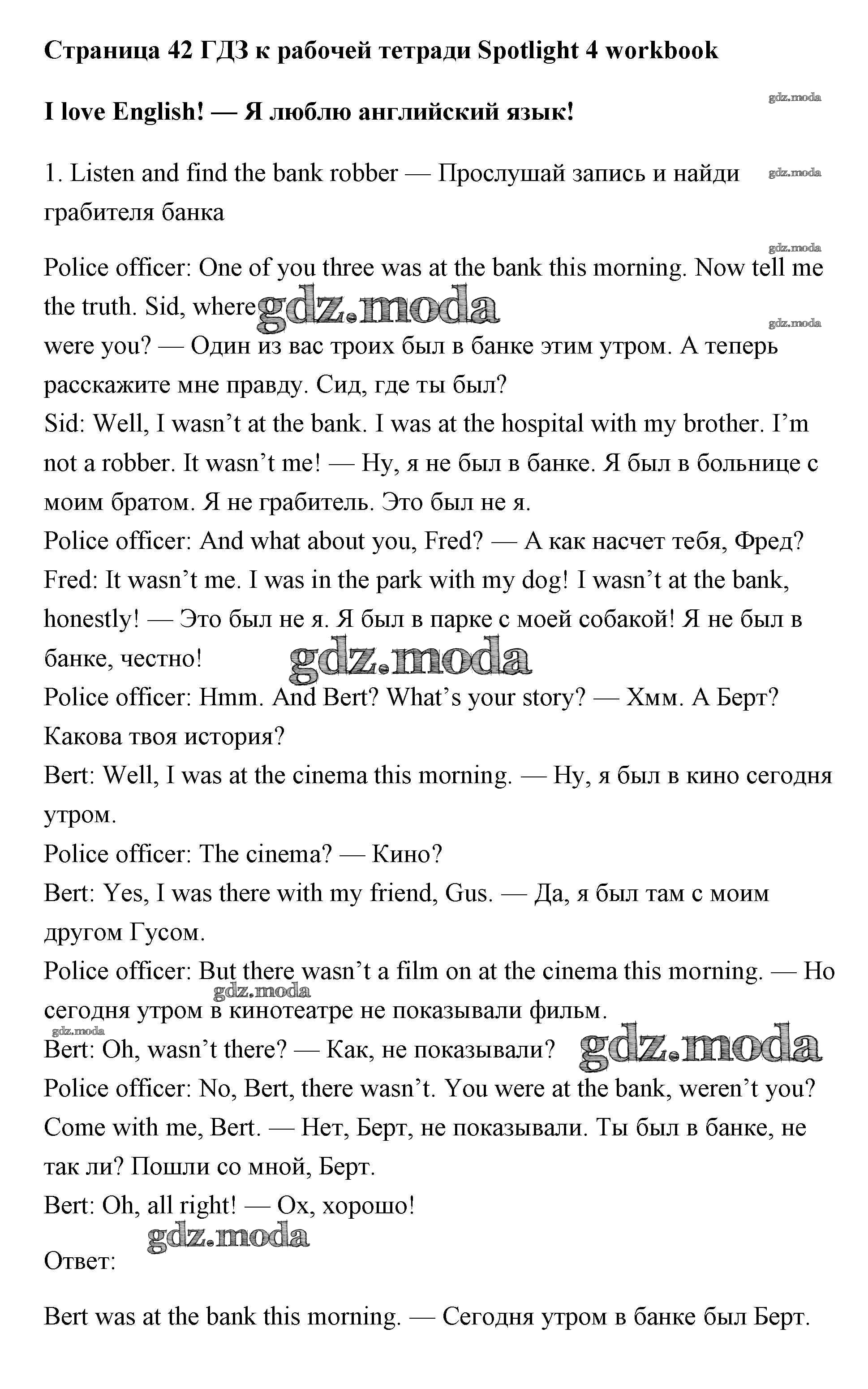 ОТВЕТ на задание № страница 42 Рабочая тетрадь по Английскому языку 4 класс Быкова Spotlight