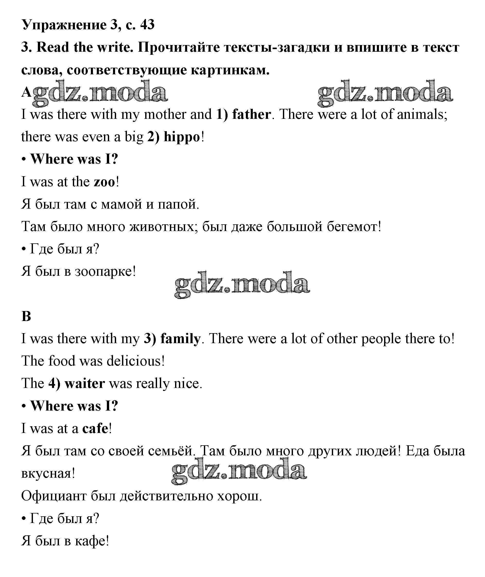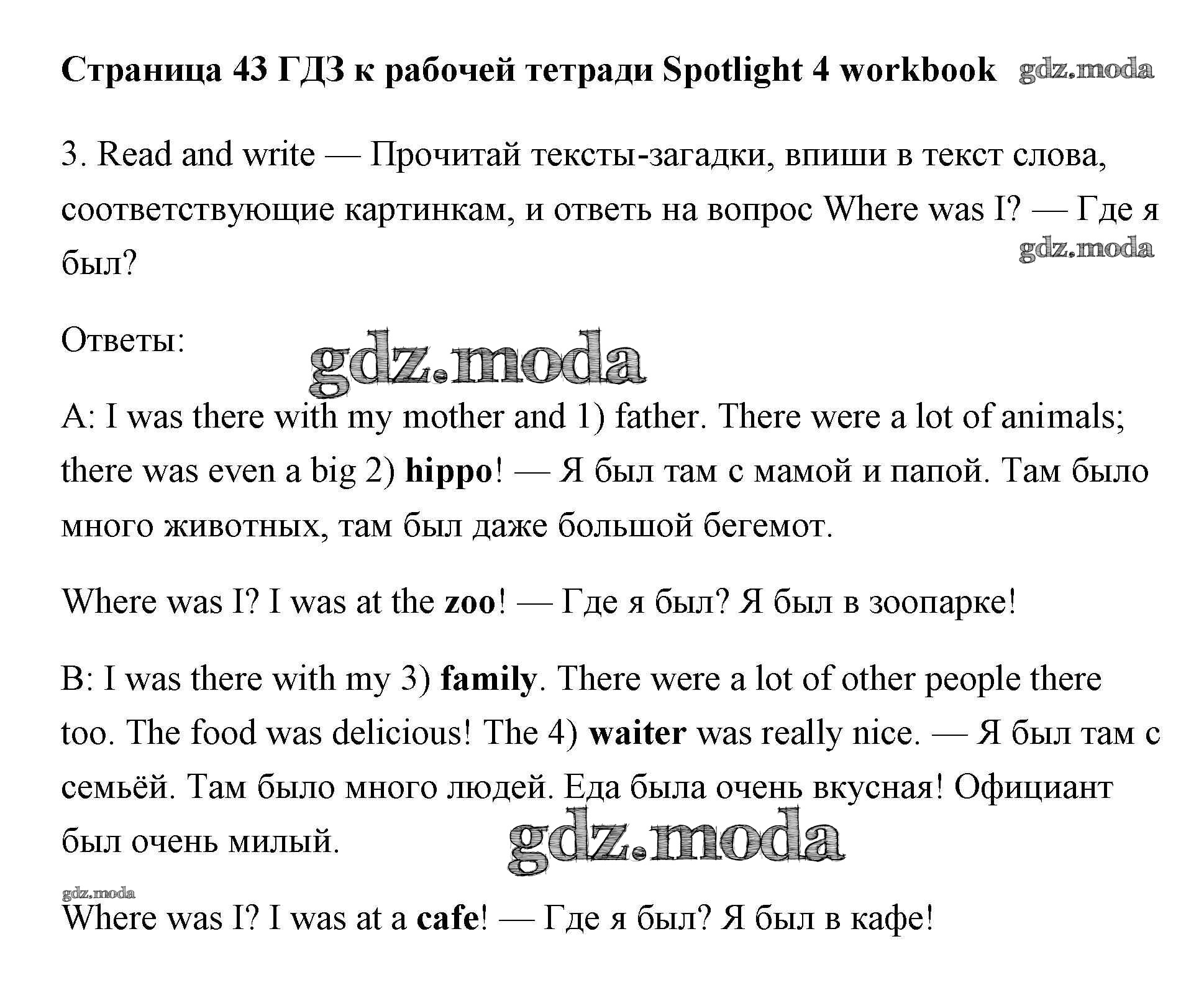 ОТВЕТ на задание № страница 43 Рабочая тетрадь по Английскому языку 4 класс Быкова Spotlight