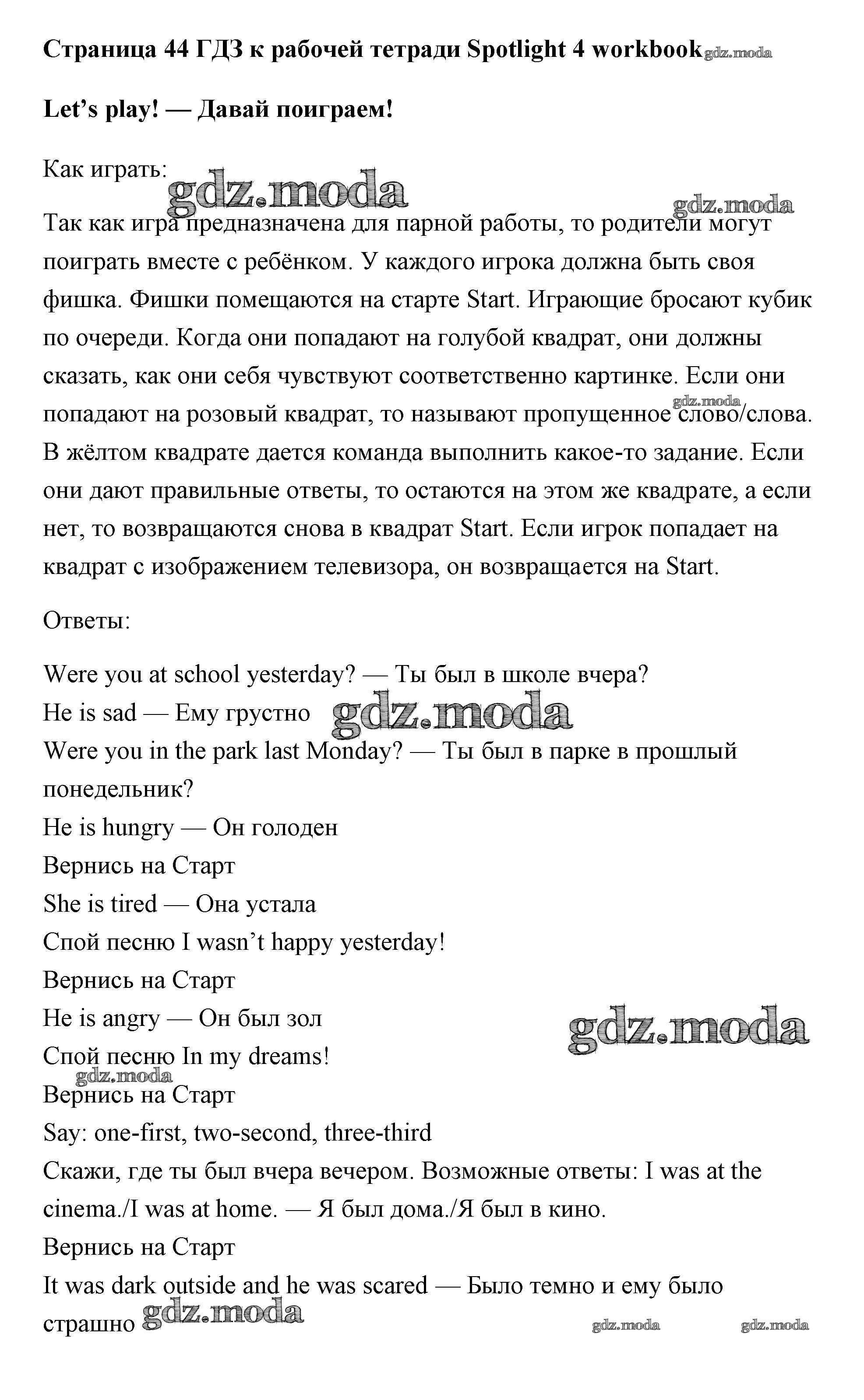 ОТВЕТ на задание № страница 44 Рабочая тетрадь по Английскому языку 4 класс Быкова Spotlight