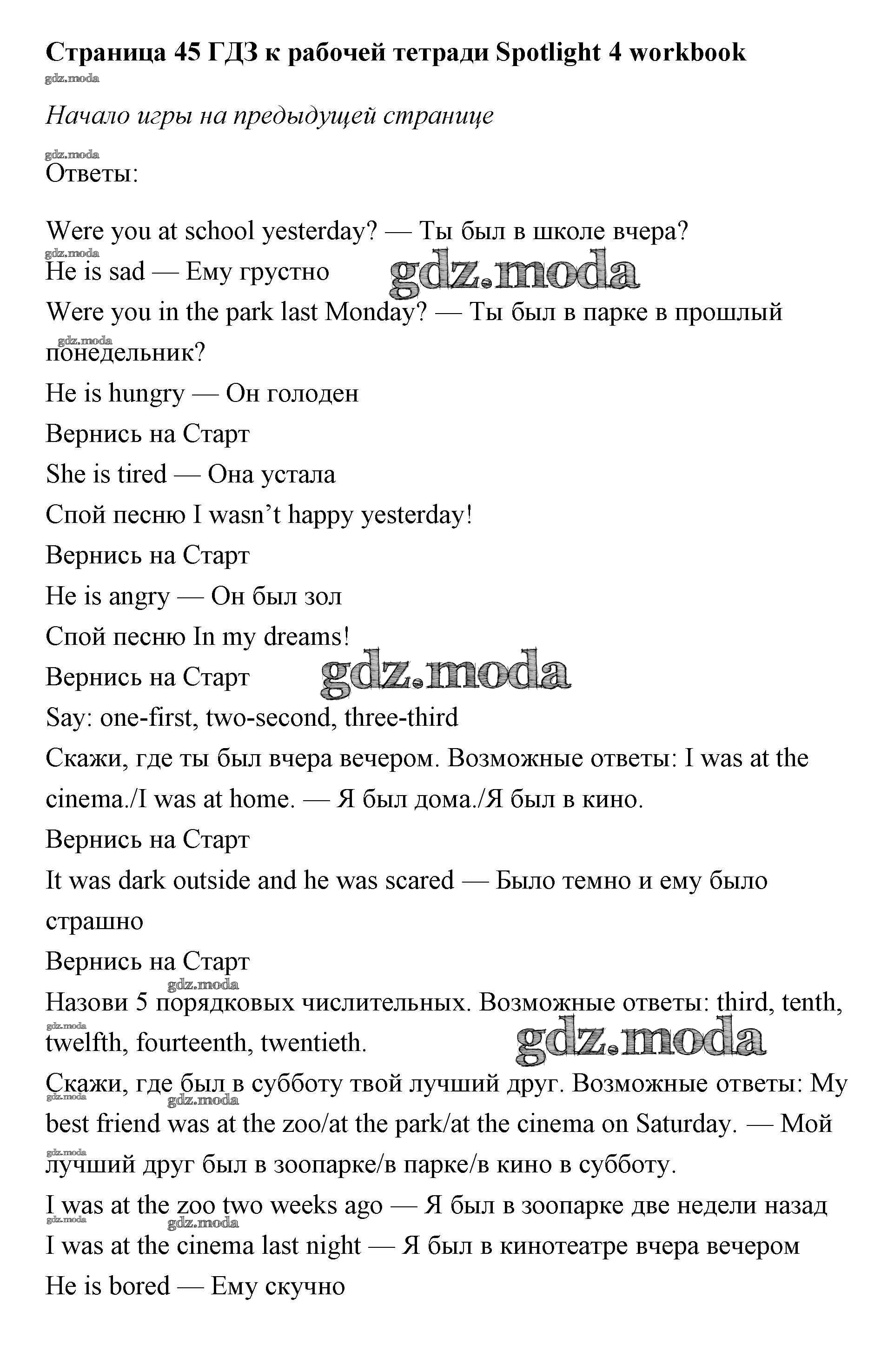 ОТВЕТ на задание № страница 45 Рабочая тетрадь по Английскому языку 4 класс Быкова Spotlight