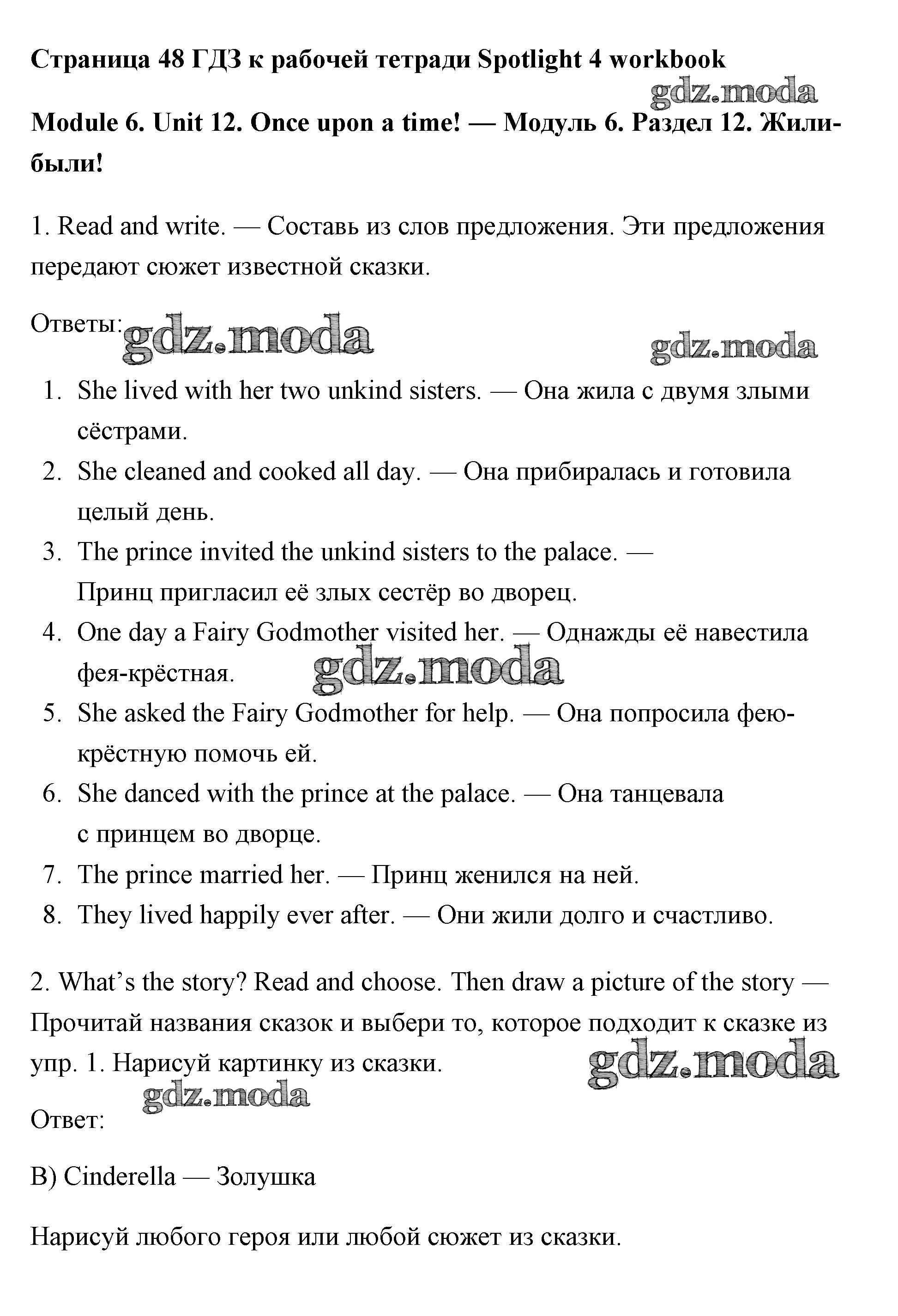 ОТВЕТ на задание № страница 48 Рабочая тетрадь по Английскому языку 4 класс Быкова Spotlight