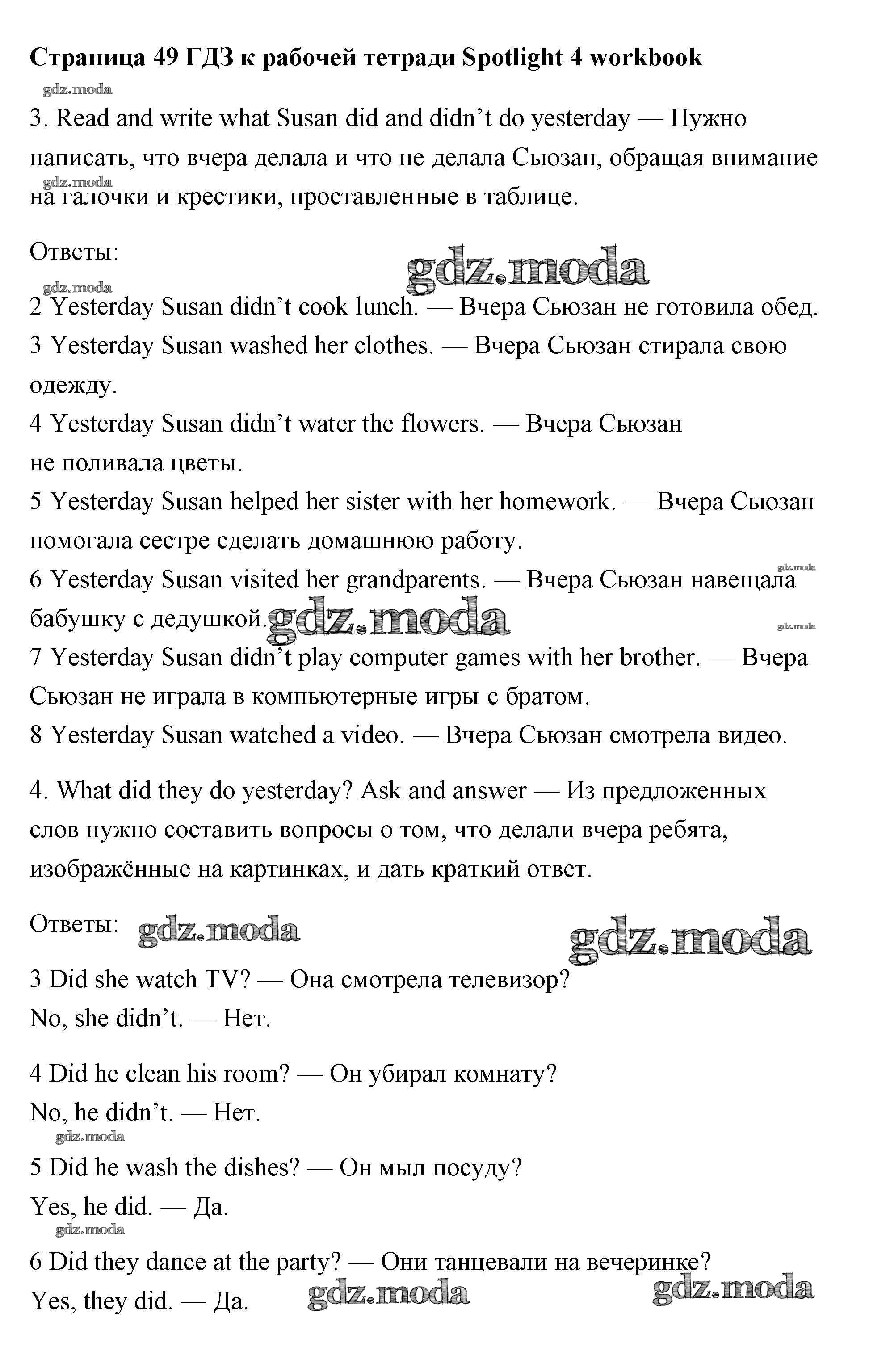 ОТВЕТ на задание № страница 49 Рабочая тетрадь по Английскому языку 4 класс Быкова Spotlight