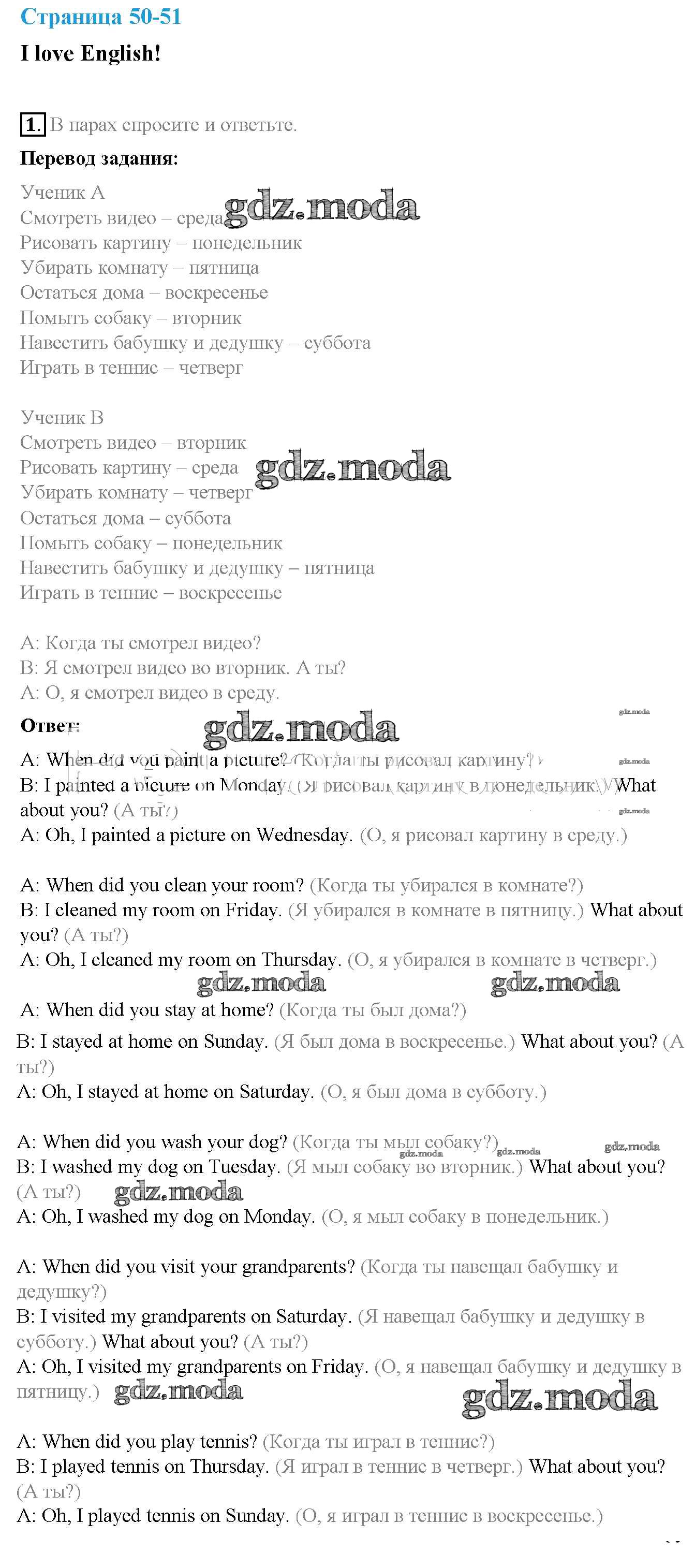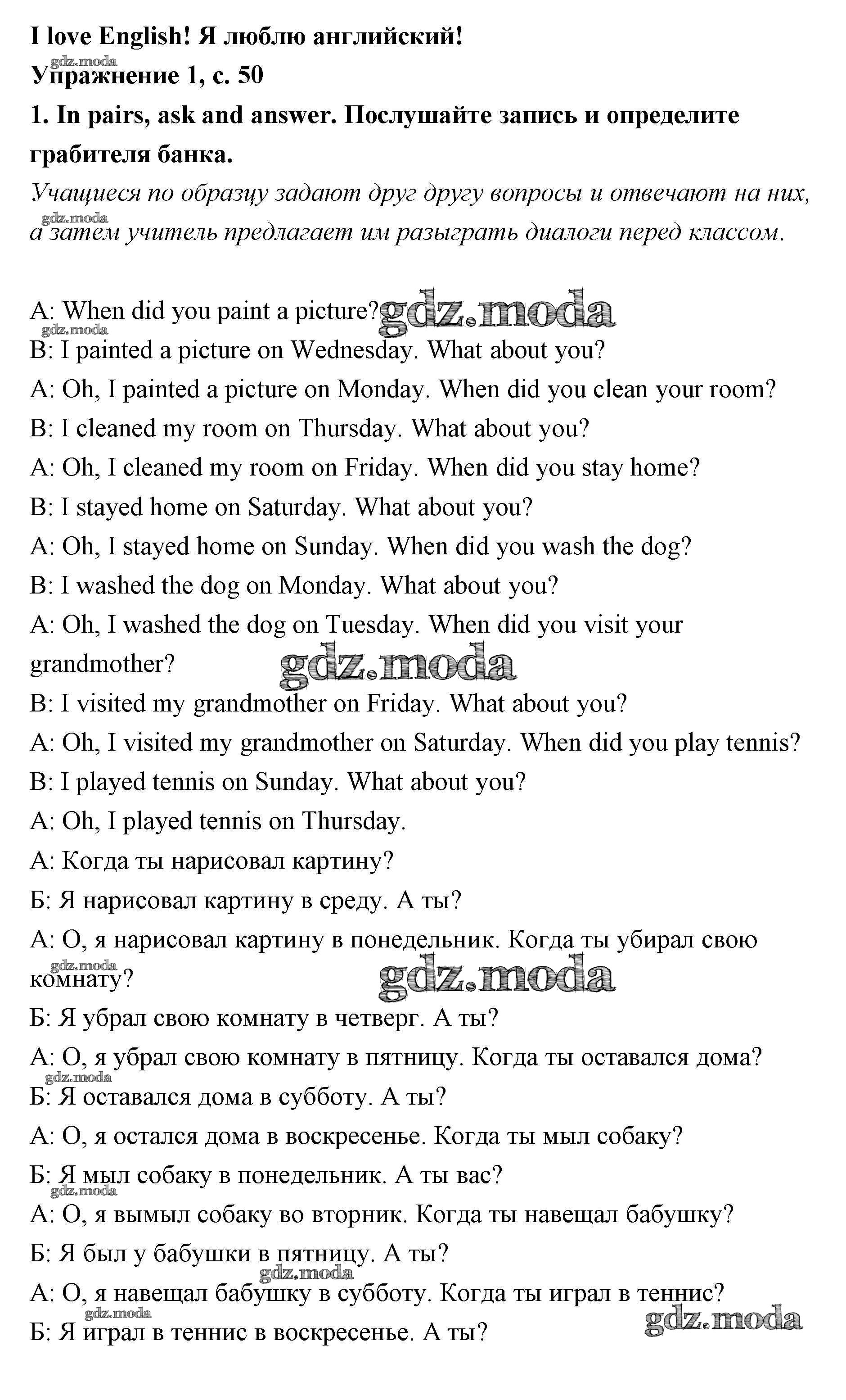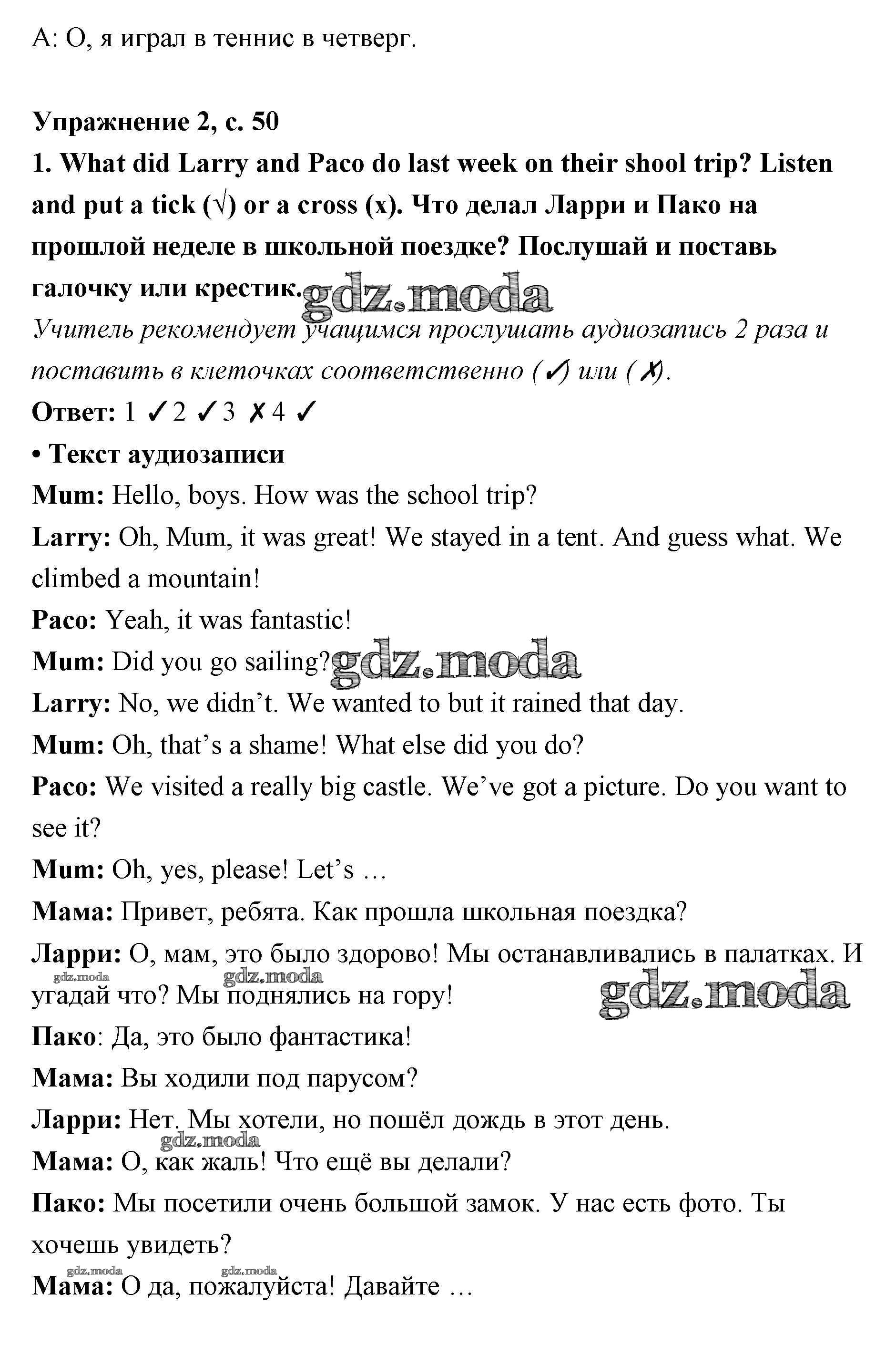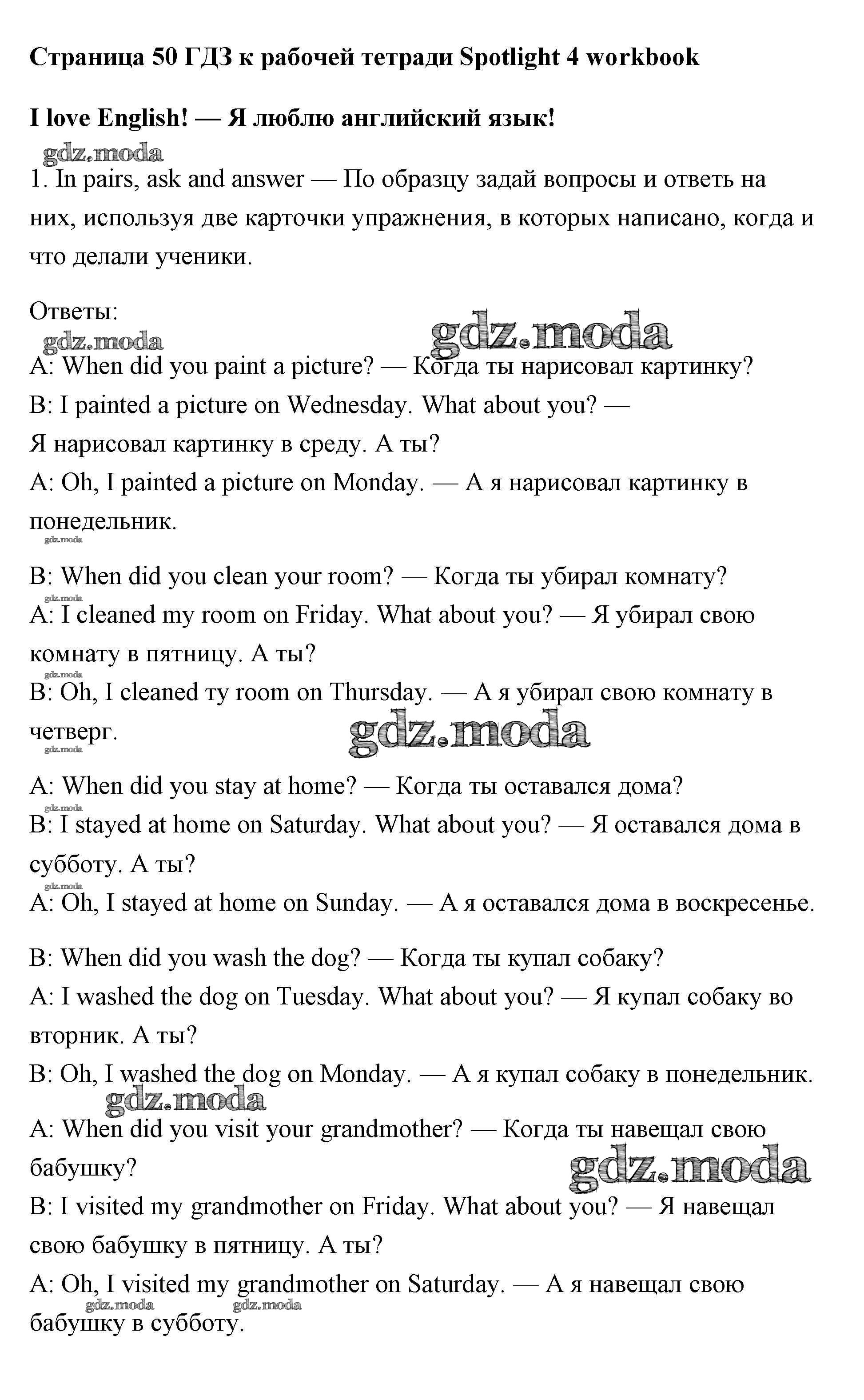 ОТВЕТ на задание № страница 50 Рабочая тетрадь по Английскому языку 4 класс Быкова Spotlight