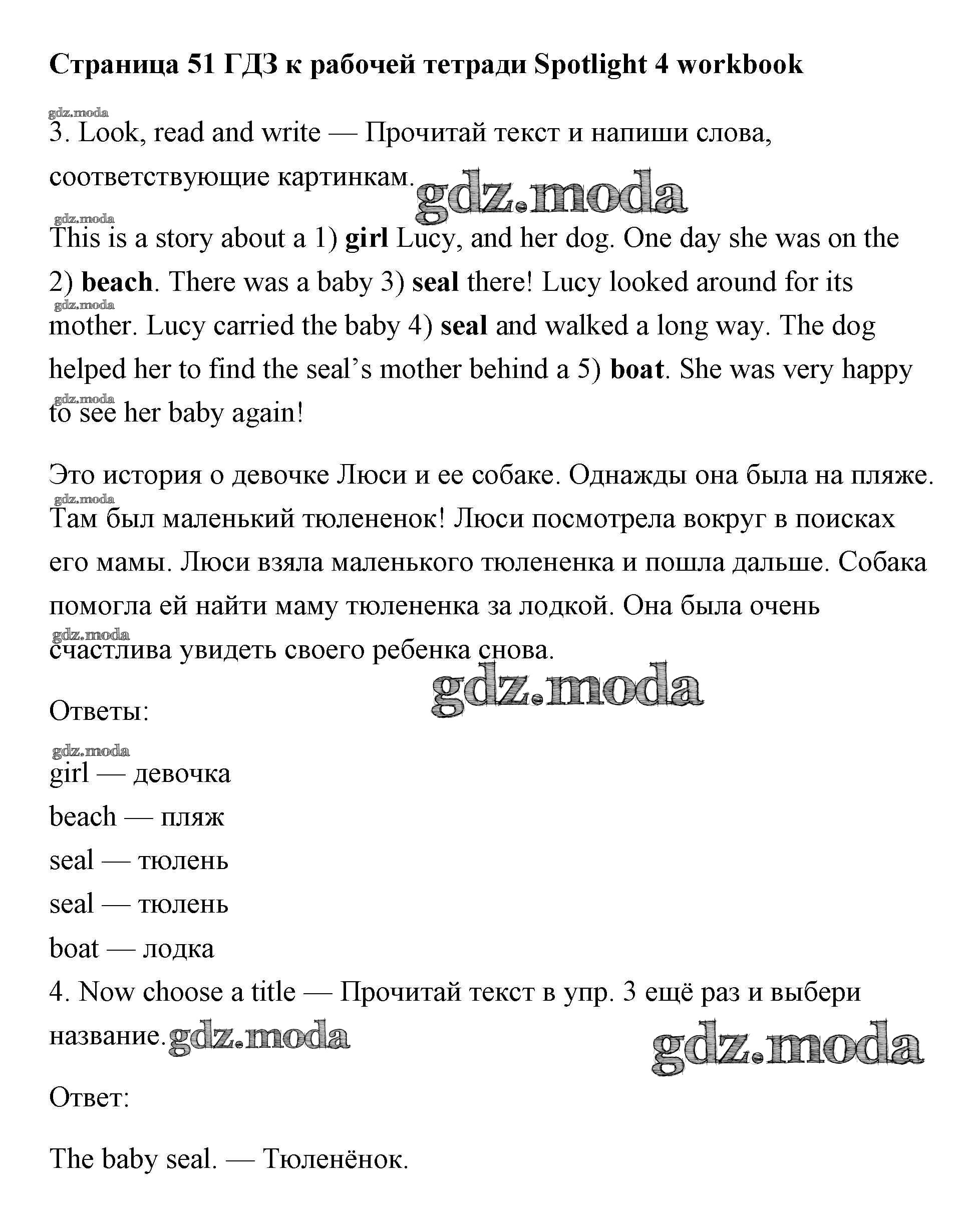 ОТВЕТ на задание № страница 51 Рабочая тетрадь по Английскому языку 4 класс Быкова Spotlight