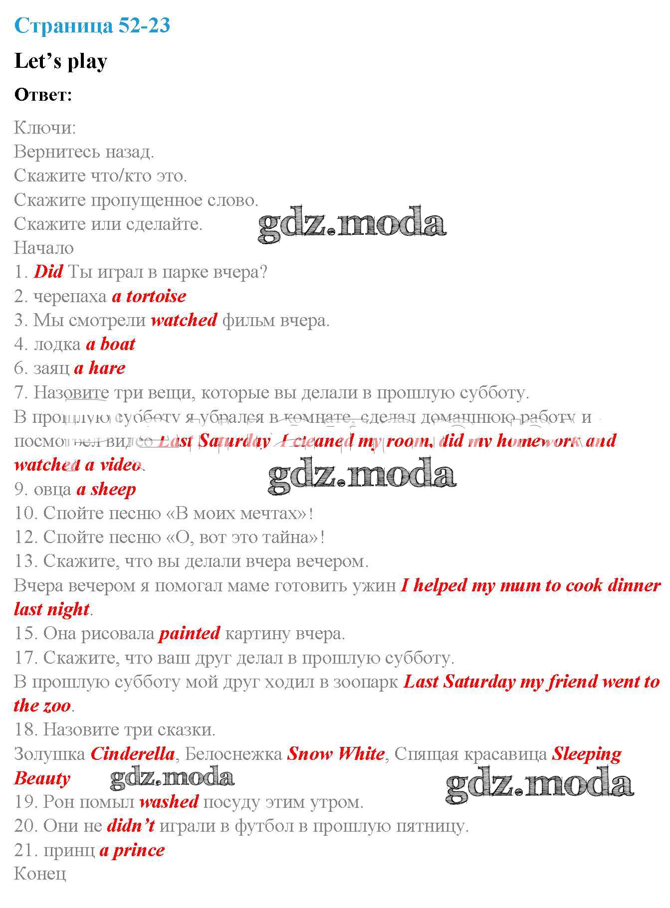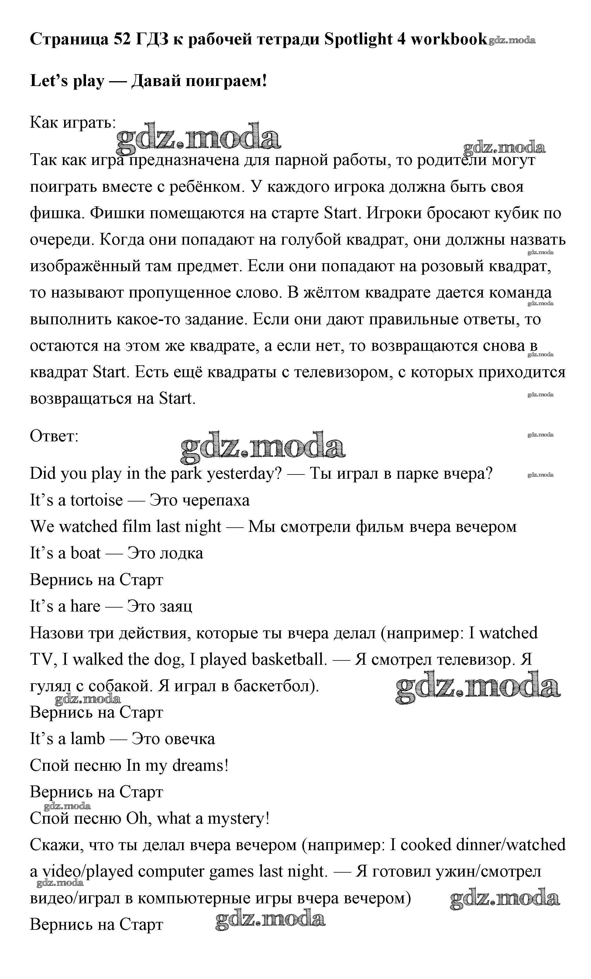 ОТВЕТ на задание № страница 52 Рабочая тетрадь по Английскому языку 4 класс Быкова Spotlight