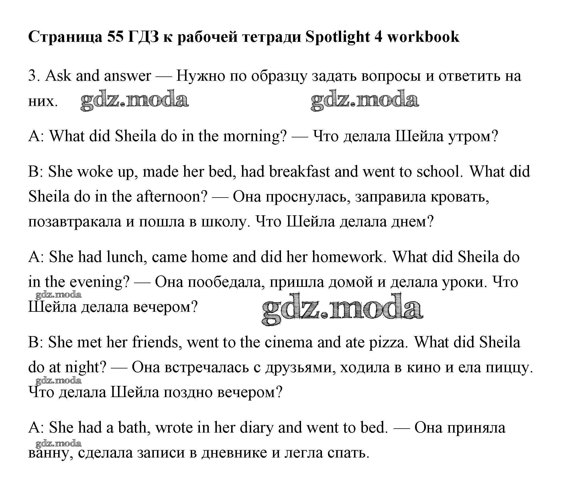 ОТВЕТ на задание № страница 55 Рабочая тетрадь по Английскому языку 4 класс Быкова Spotlight