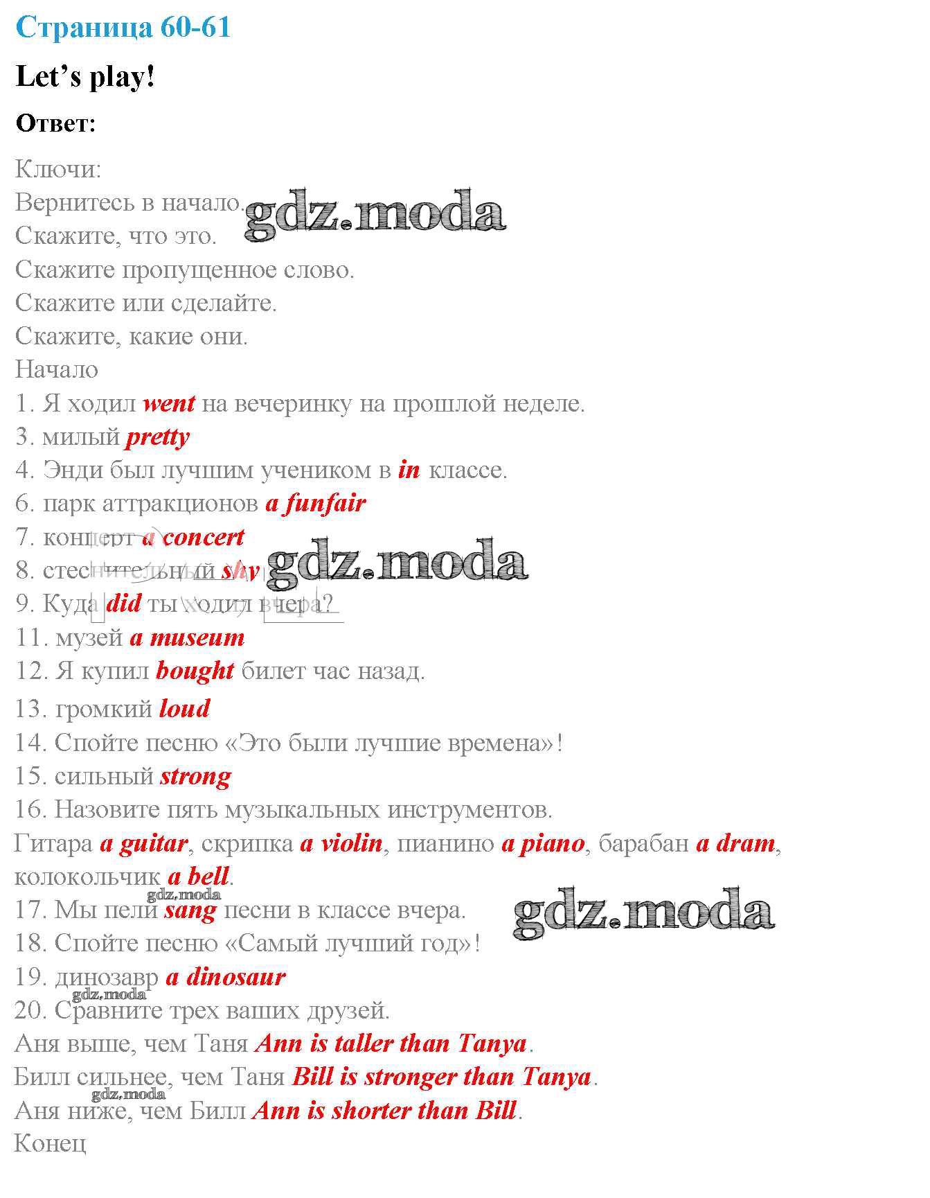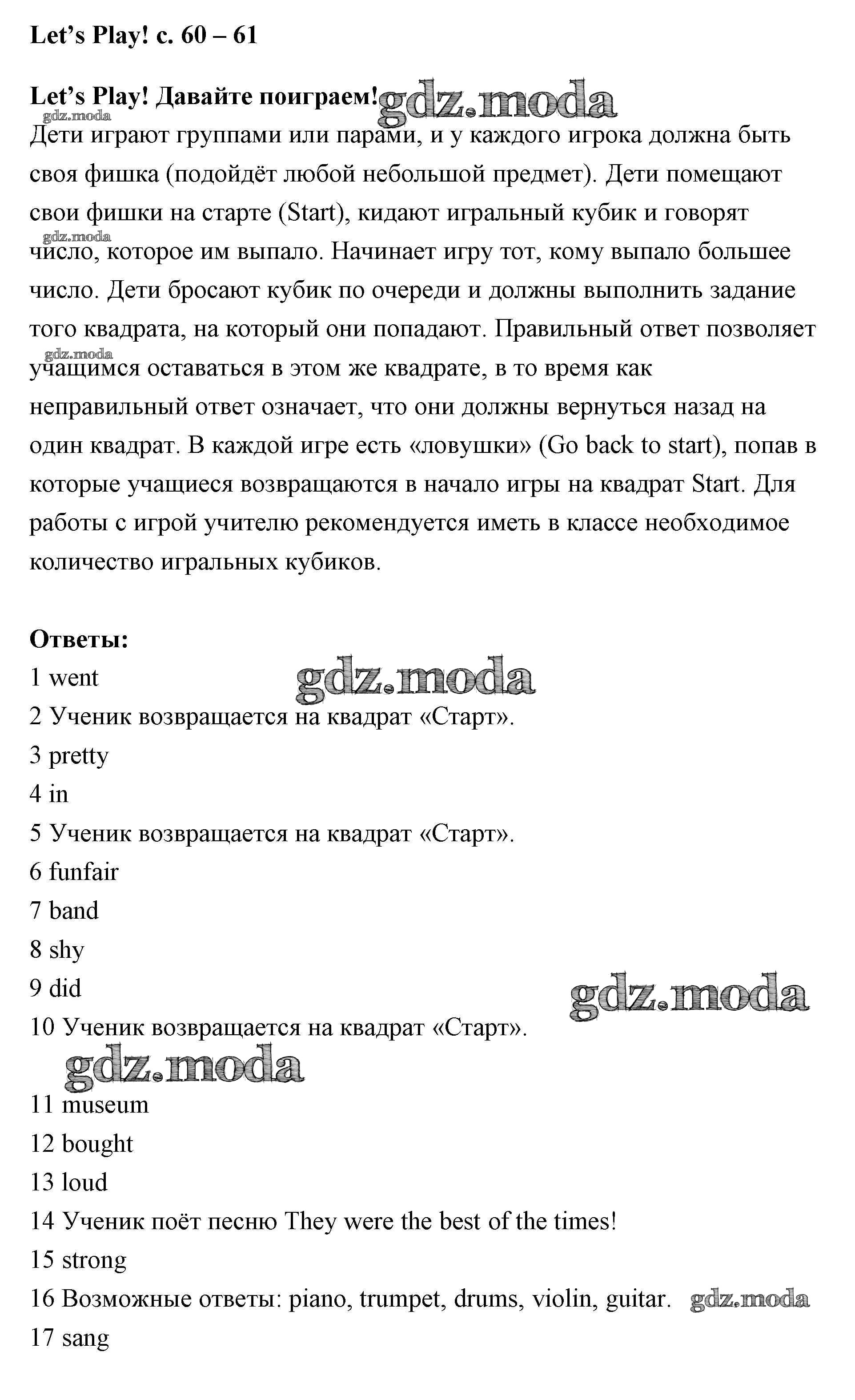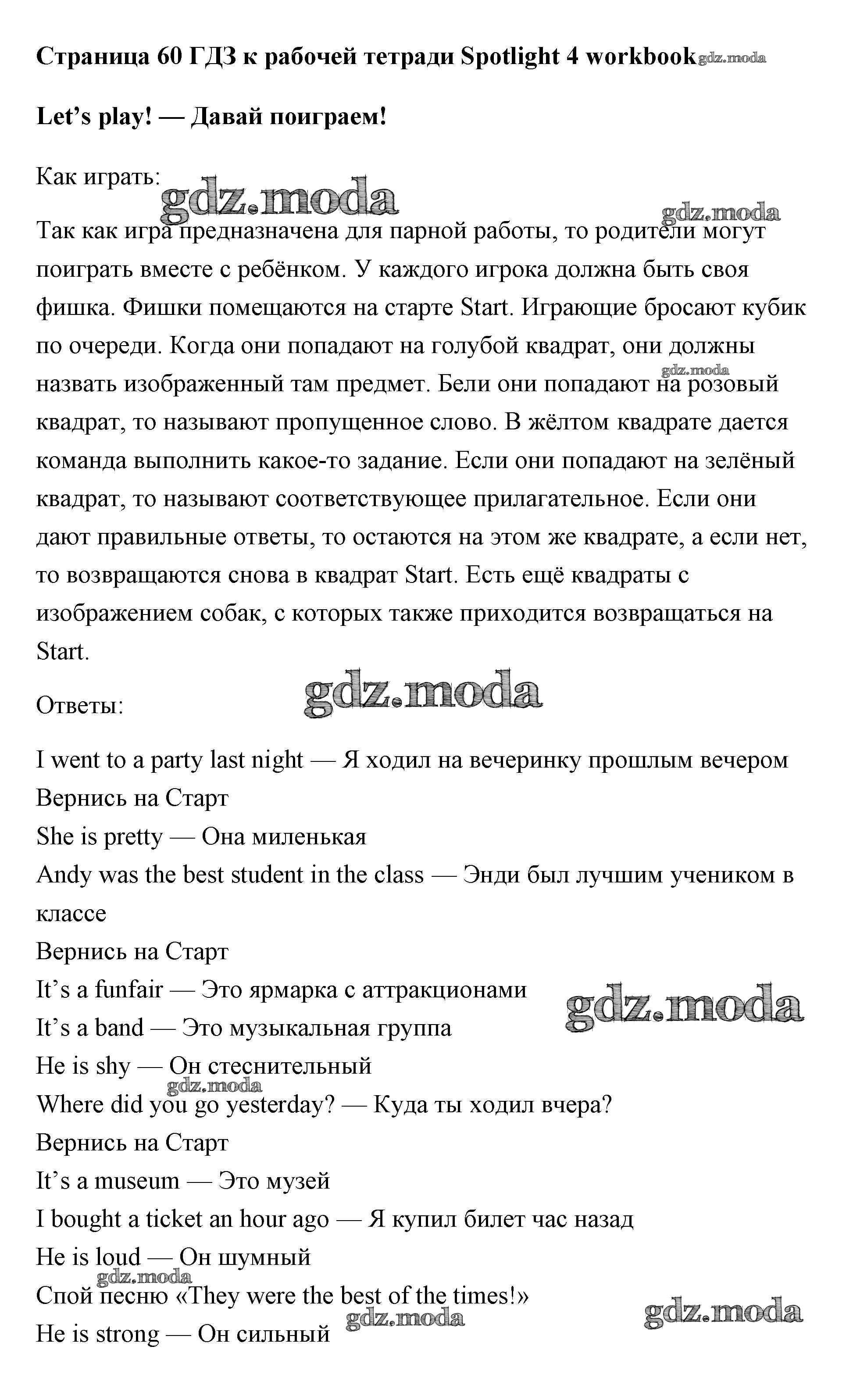 ОТВЕТ на задание № страница 60 Рабочая тетрадь по Английскому языку 4 класс Быкова Spotlight
