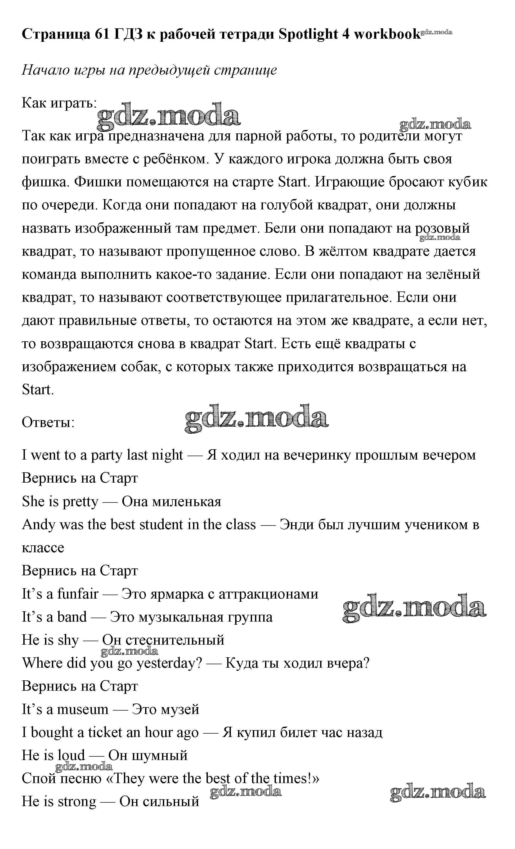 ОТВЕТ на задание № страница 61 Рабочая тетрадь по Английскому языку 4 класс Быкова Spotlight