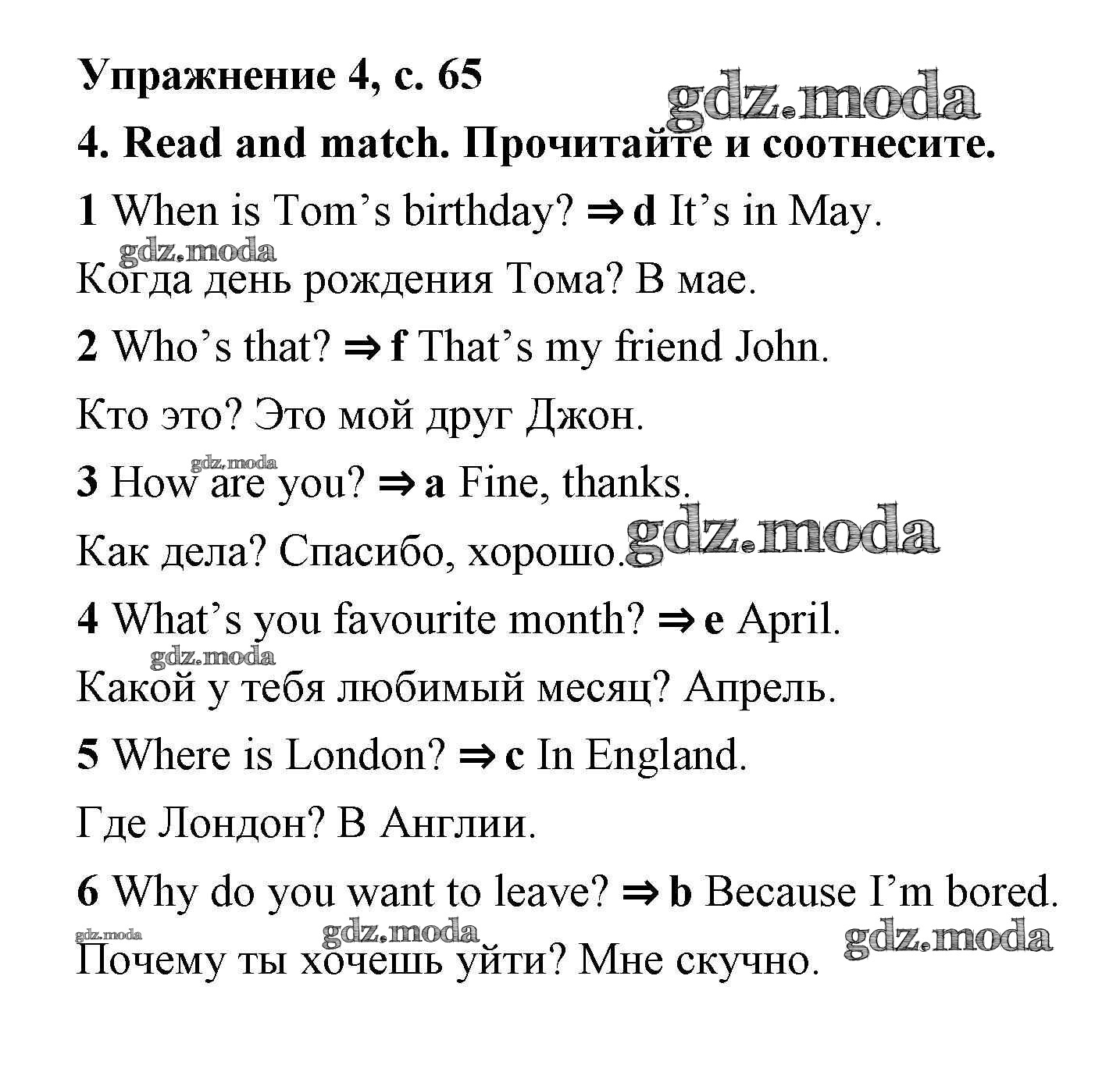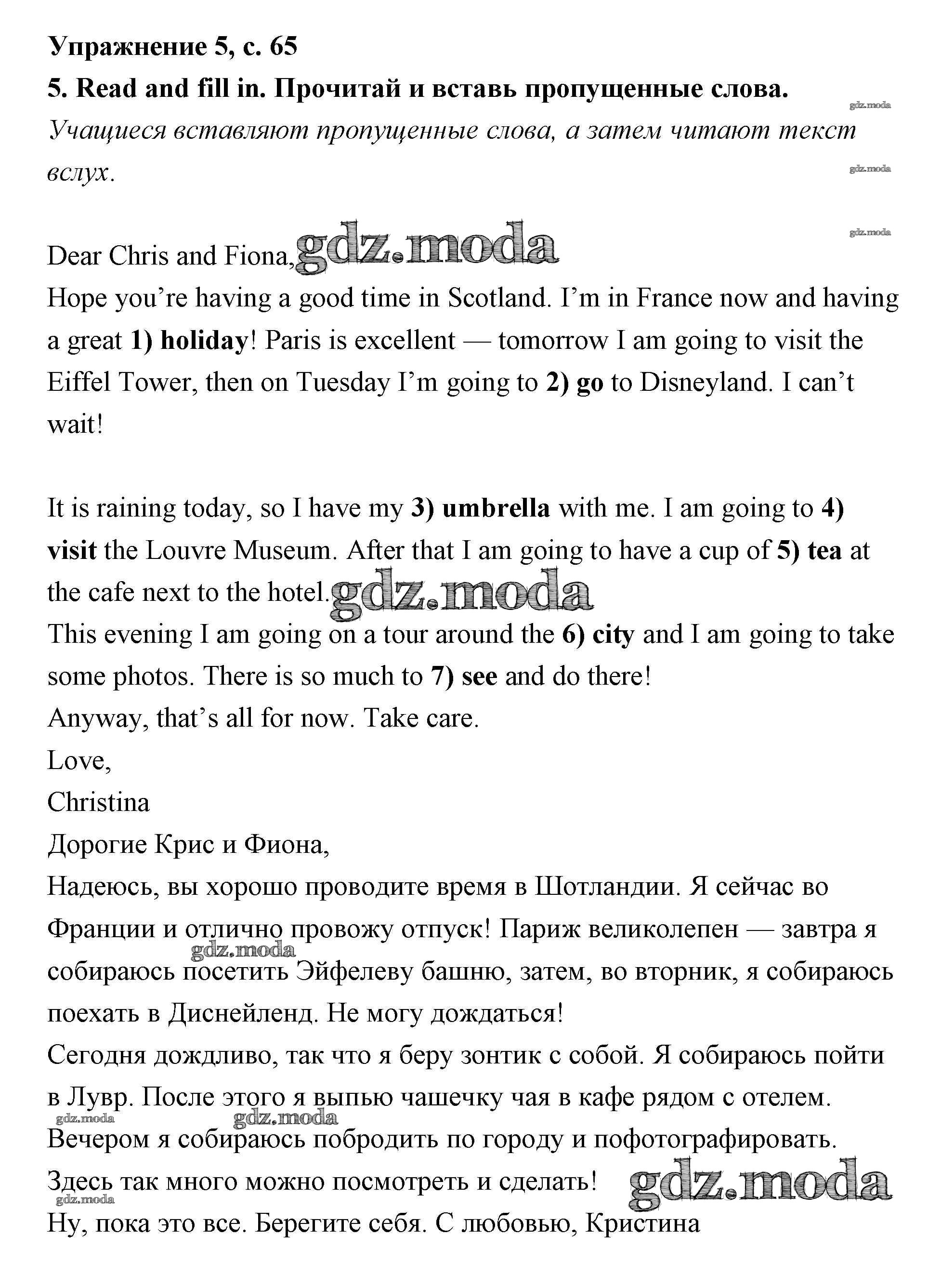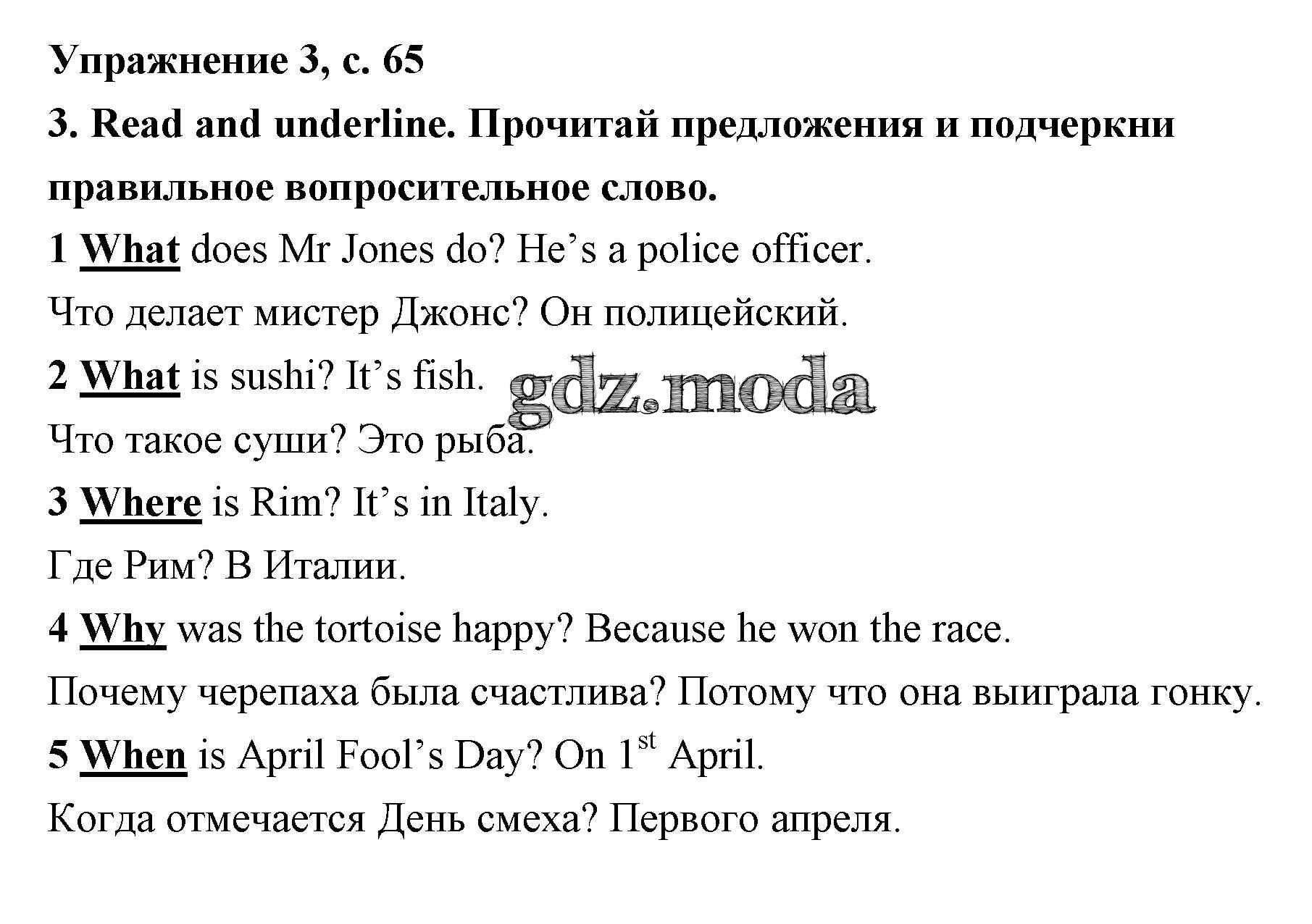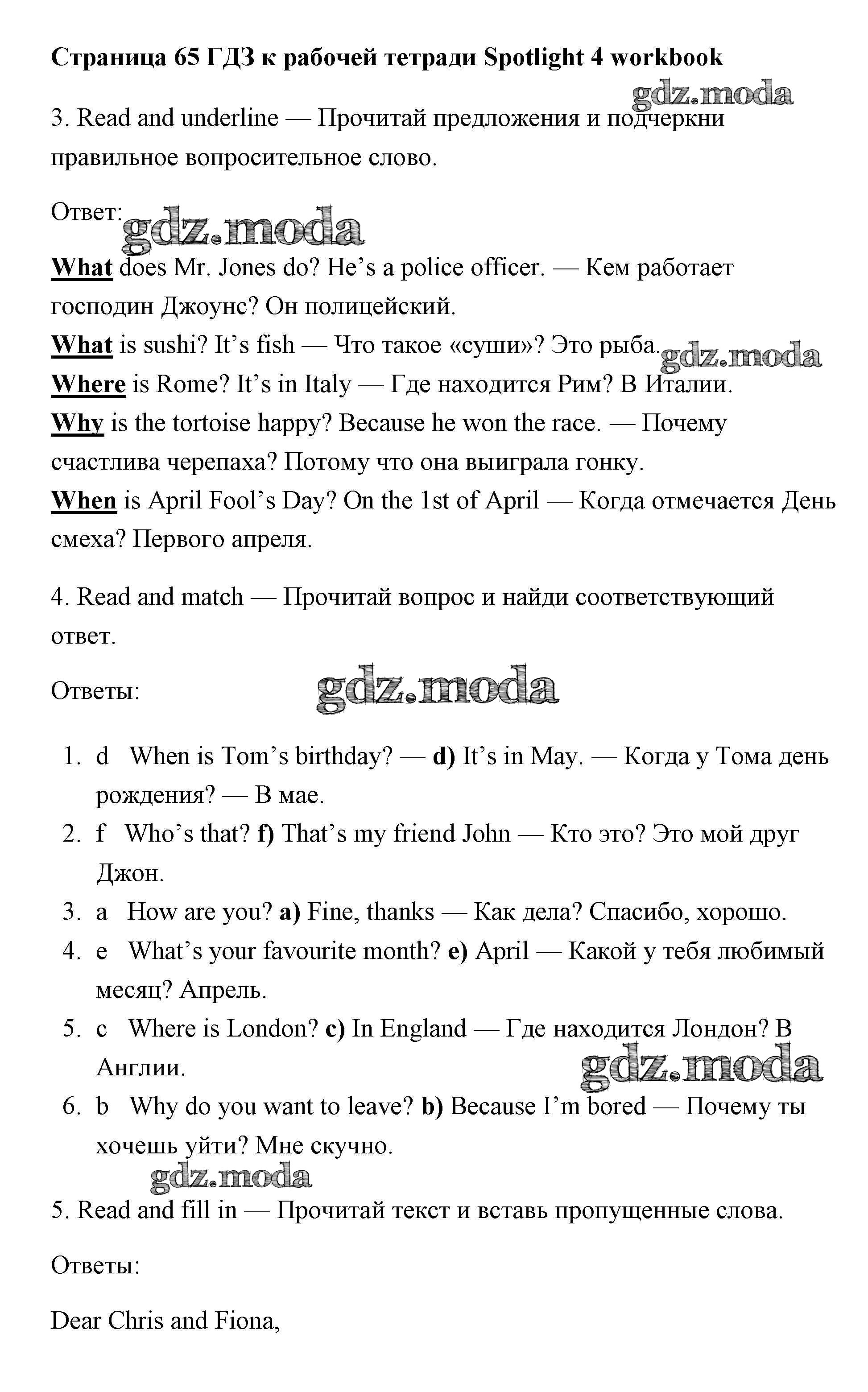 ОТВЕТ на задание № страница 65 Рабочая тетрадь по Английскому языку 4 класс Быкова Spotlight