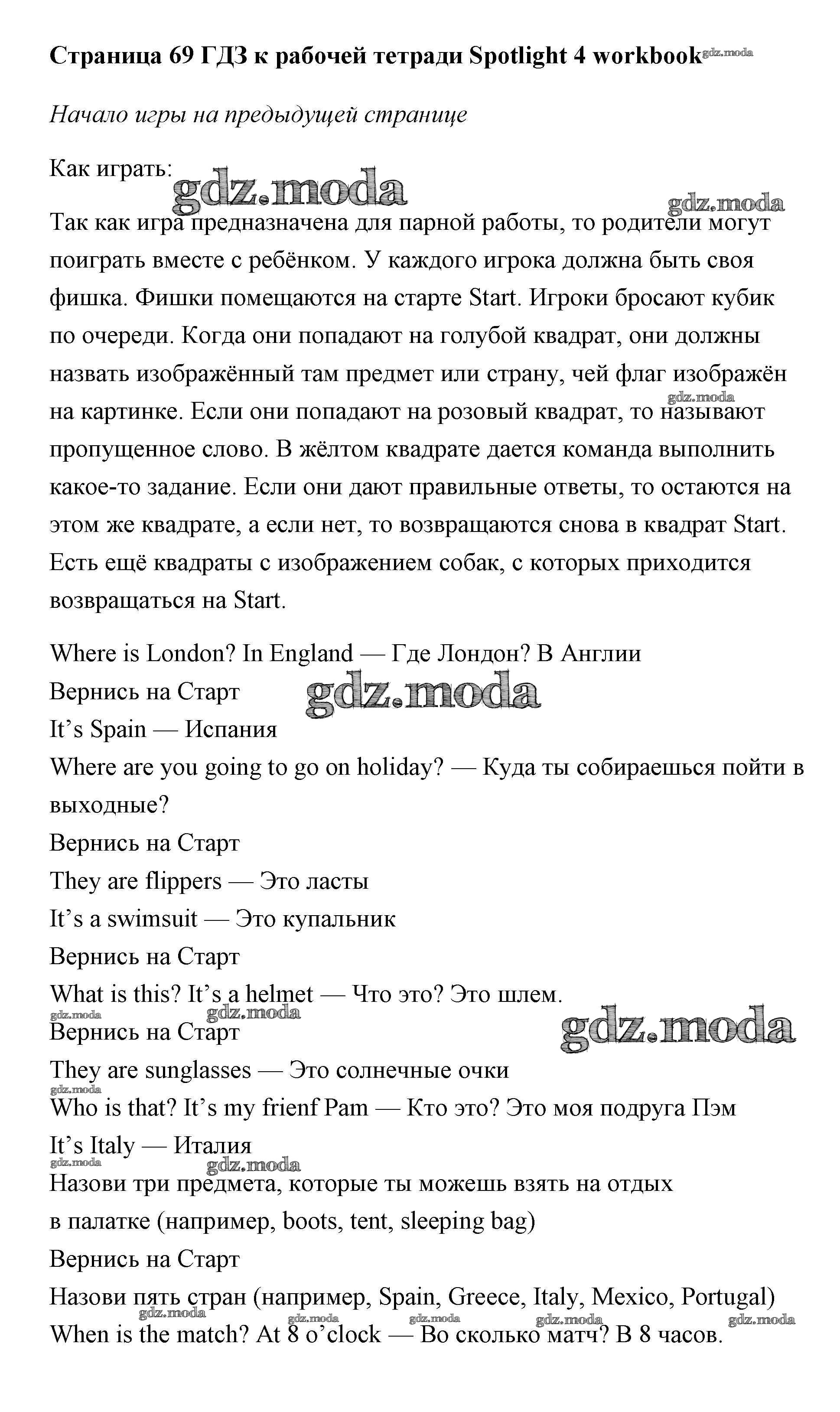 ГДЗ решение к заданию № страница 69 Английский язык 4 класс рабочая тетрадь Быкова Просвещение 2017 ФГОС бесплатно на гдз.мода!