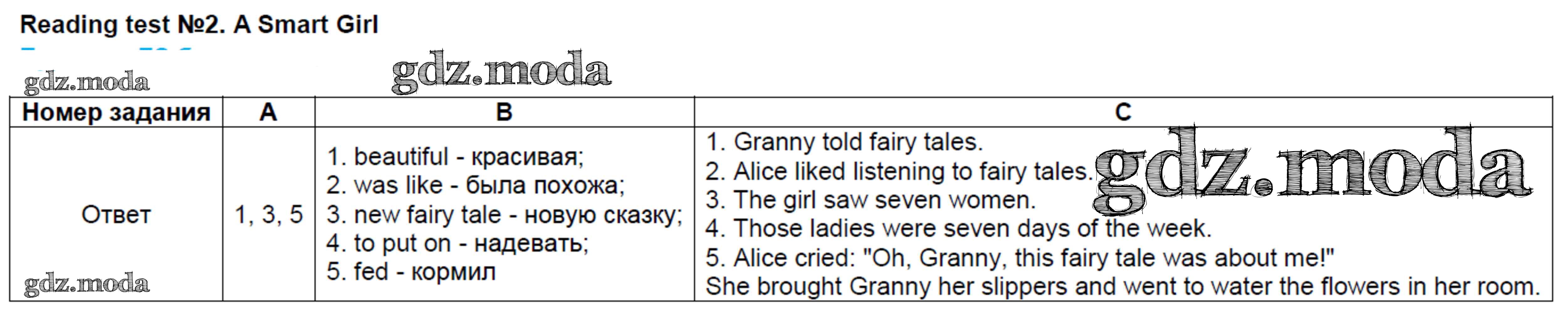 ОТВЕТ на задание № №2. Reading test 2. A Smart Girl Контрольно-измерительные материалы (КИМ) по Английскому языку 4 класс Кулинич