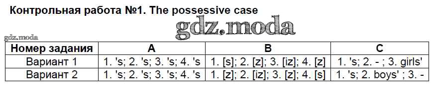 ГДЗ решение к заданию № КР №1. The possessive case Английский язык 4 класс контрольно-измерительные материалы Кулинич Г.Г. ВАКО 2018 ФГОС бесплатно на гдз.мода!