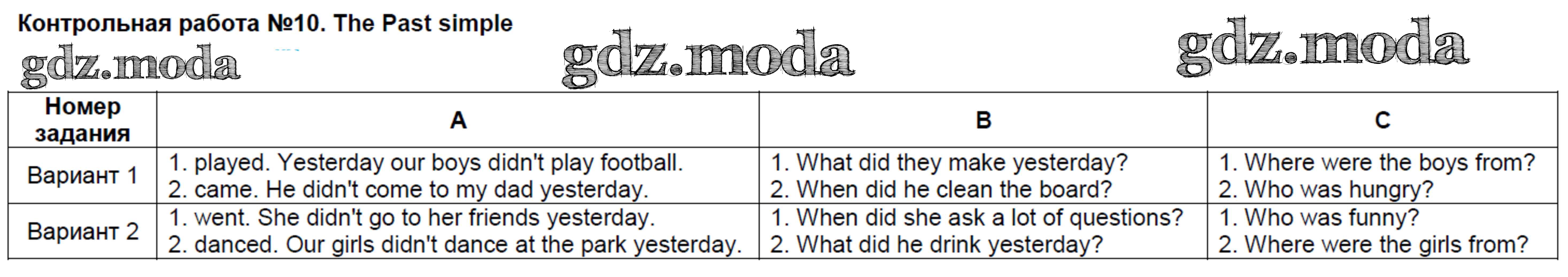 ГДЗ решение к заданию № КР №10. The Past simple Английский язык 4 класс контрольно-измерительные материалы Кулинич Г.Г. ВАКО 2018 ФГОС бесплатно на гдз.мода!