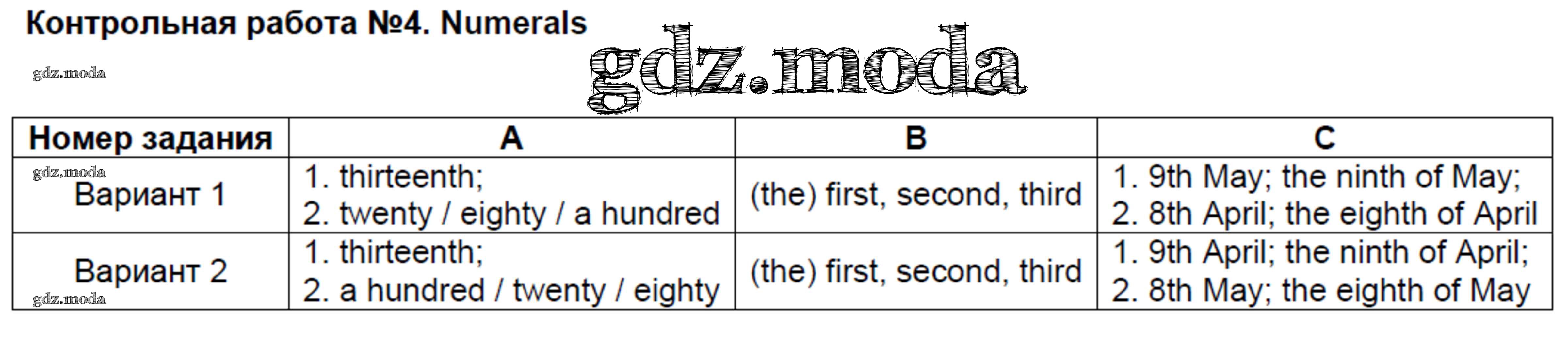 ГДЗ решение к заданию № КР №4. Numerals Английский язык 4 класс контрольно-измерительные материалы Кулинич Г.Г. ВАКО 2018 ФГОС бесплатно на гдз.мода!