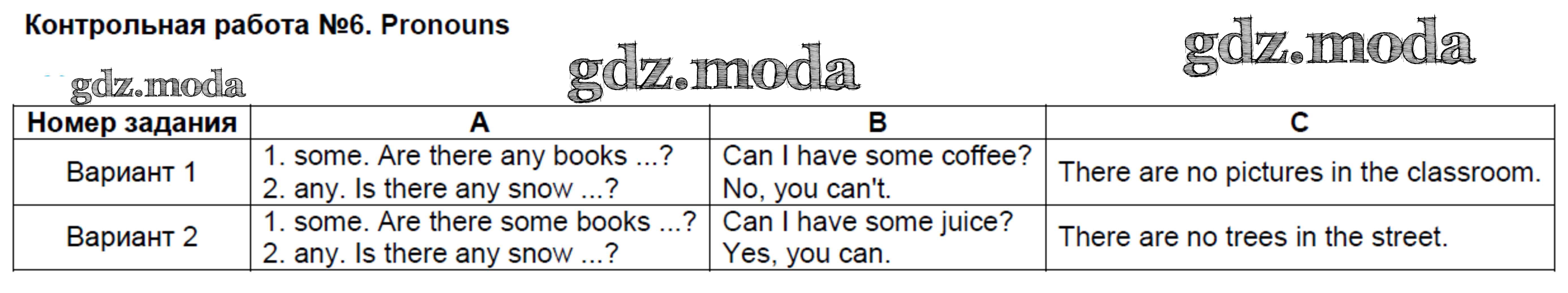 ГДЗ решение к заданию № КР №6. Pronouns Английский язык 4 класс контрольно-измерительные материалы Кулинич Г.Г. ВАКО 2018 ФГОС бесплатно на гдз.мода!