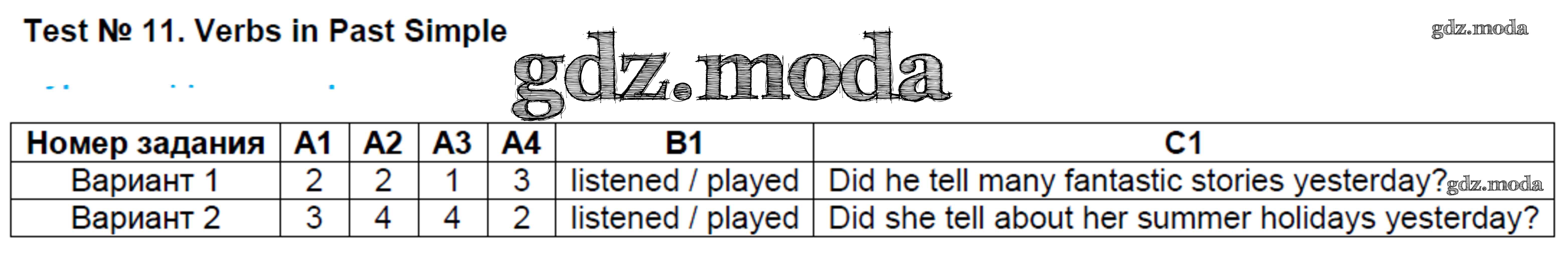 ГДЗ решение к заданию № Тест №11. Verbs in Past Simple Английский язык 4 класс контрольно-измерительные материалы Кулинич Г.Г. ВАКО 2018 ФГОС бесплатно на гдз.мода!