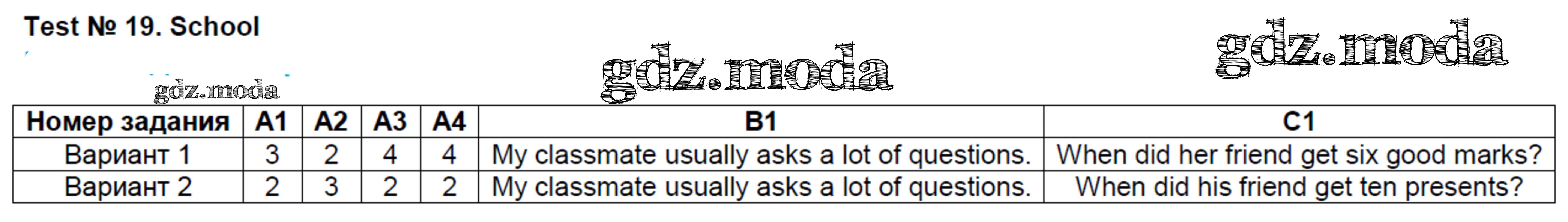 ГДЗ решение к заданию № Тест №19. School Английский язык 4 класс контрольно-измерительные материалы Кулинич Г.Г. ВАКО 2018 ФГОС бесплатно на гдз.мода!