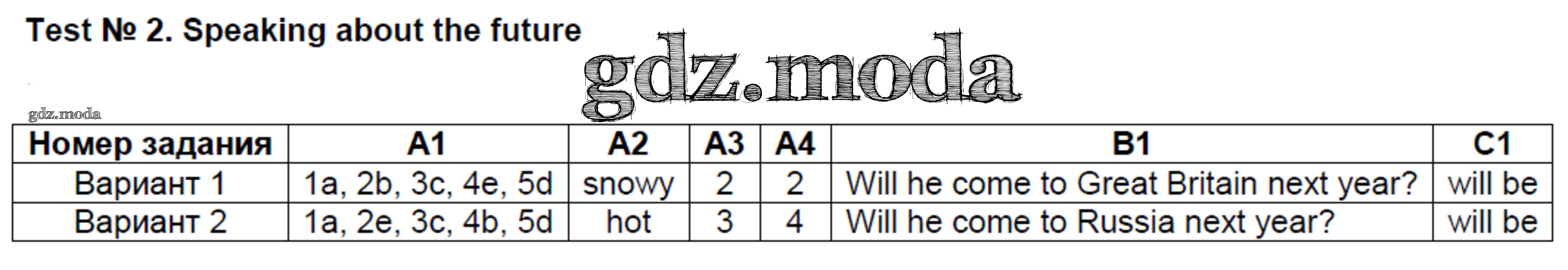 ГДЗ решение к заданию № Тест №2. Speaking about the future Английский язык 4 класс контрольно-измерительные материалы Кулинич Г.Г. ВАКО 2018 ФГОС бесплатно на гдз.мода!