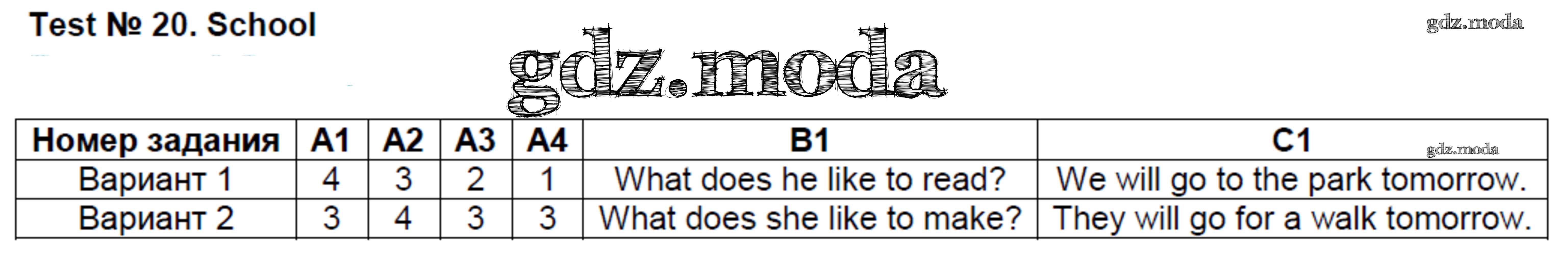 ГДЗ решение к заданию № Тест №20. School Английский язык 4 класс контрольно-измерительные материалы Кулинич Г.Г. ВАКО 2018 ФГОС бесплатно на гдз.мода!