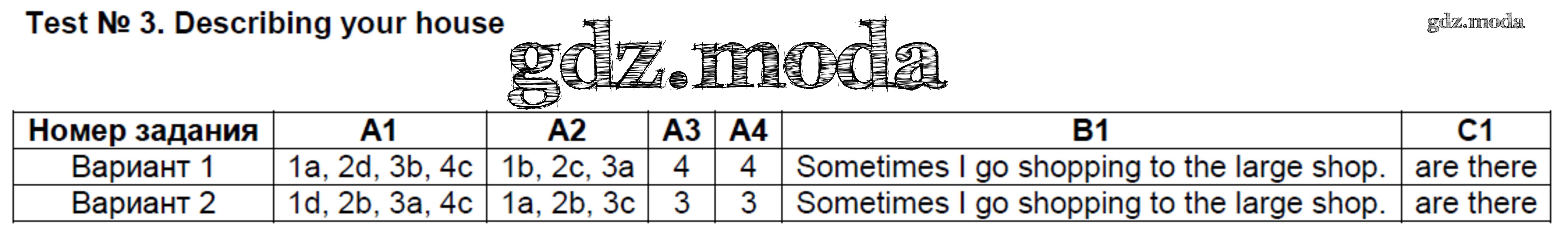ГДЗ решение к заданию № Тест №3. Describing your house Английский язык 4 класс контрольно-измерительные материалы Кулинич Г.Г. ВАКО 2018 ФГОС бесплатно на гдз.мода!