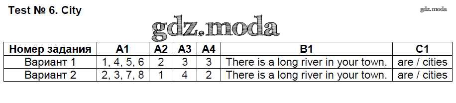 ГДЗ решение к заданию № Тест №6. City Английский язык 4 класс контрольно-измерительные материалы Кулинич Г.Г. ВАКО 2018 ФГОС бесплатно на гдз.мода!