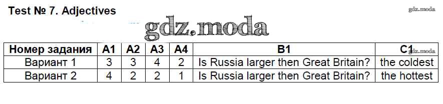 ГДЗ решение к заданию № Тест №7. Adjectives Английский язык 4 класс контрольно-измерительные материалы Кулинич Г.Г. ВАКО 2018 ФГОС бесплатно на гдз.мода!