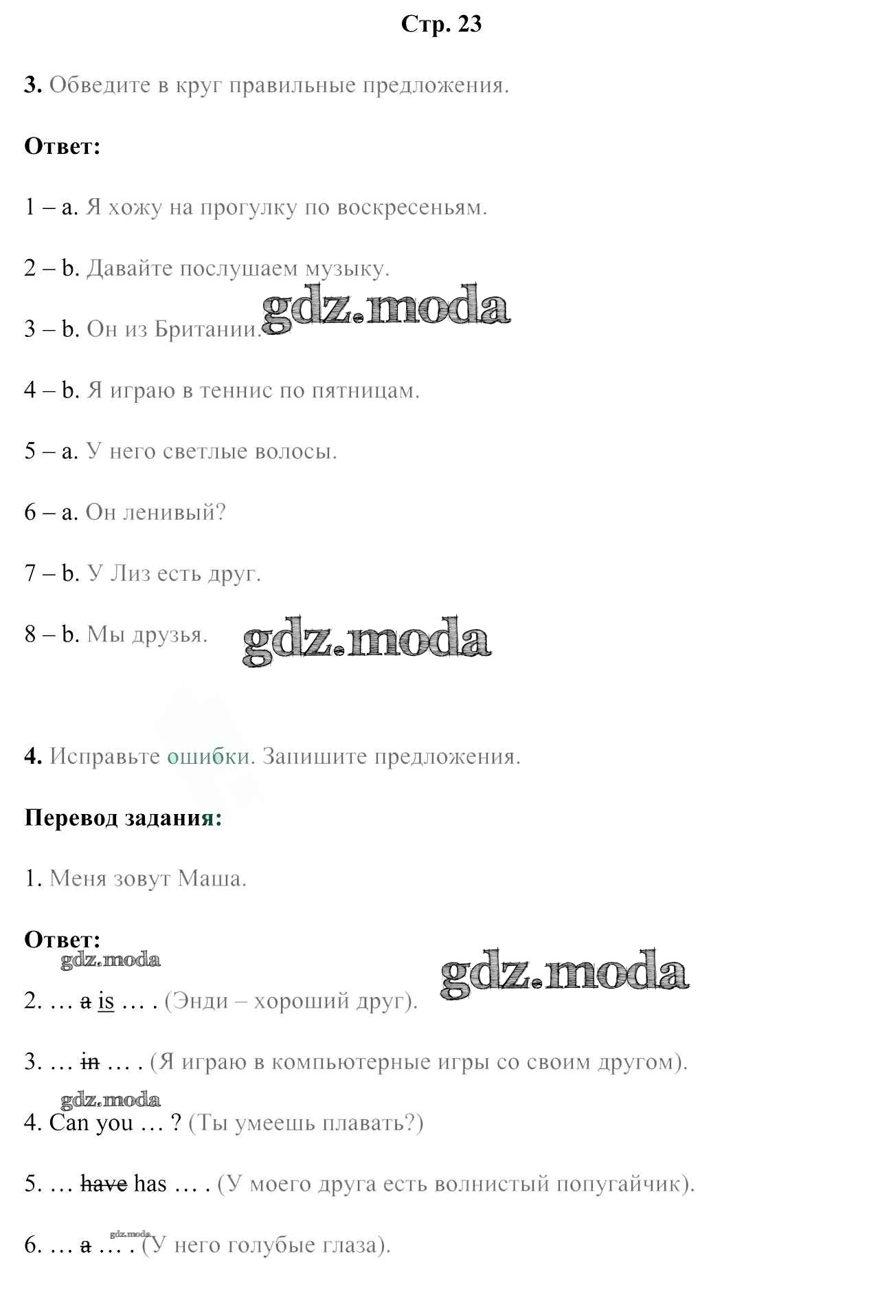ГДЗ решение к заданию № 23 Английский язык 4 класс рабочая тетрадь Лапицкая Л.М. Аверсэв 2019 Часть 1, Часть 2 ФГОС бесплатно на гдз.мода!