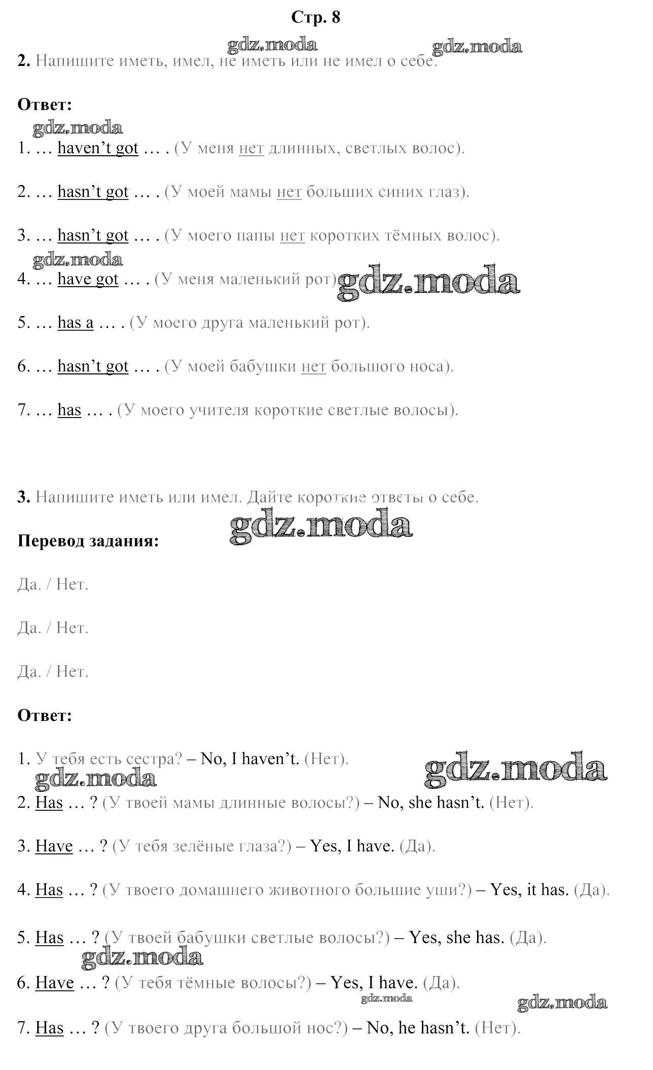 ГДЗ решение к заданию № 8 Английский язык 4 класс рабочая тетрадь Лапицкая Л.М. Аверсэв 2019 Часть 1, Часть 2 ФГОС бесплатно на гдз.мода!