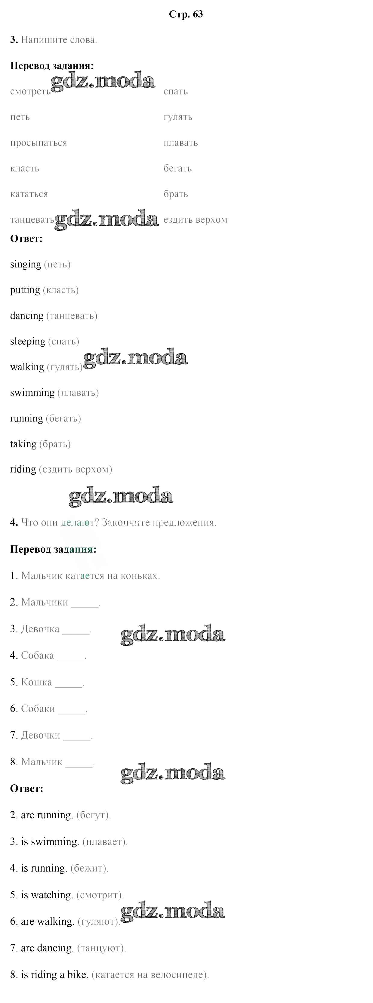 ГДЗ решение к заданию № 63 Английский язык 4 класс рабочая тетрадь Лапицкая Л.М. Аверсэв 2019 Часть 1, Часть 2 ФГОС бесплатно на гдз.мода!