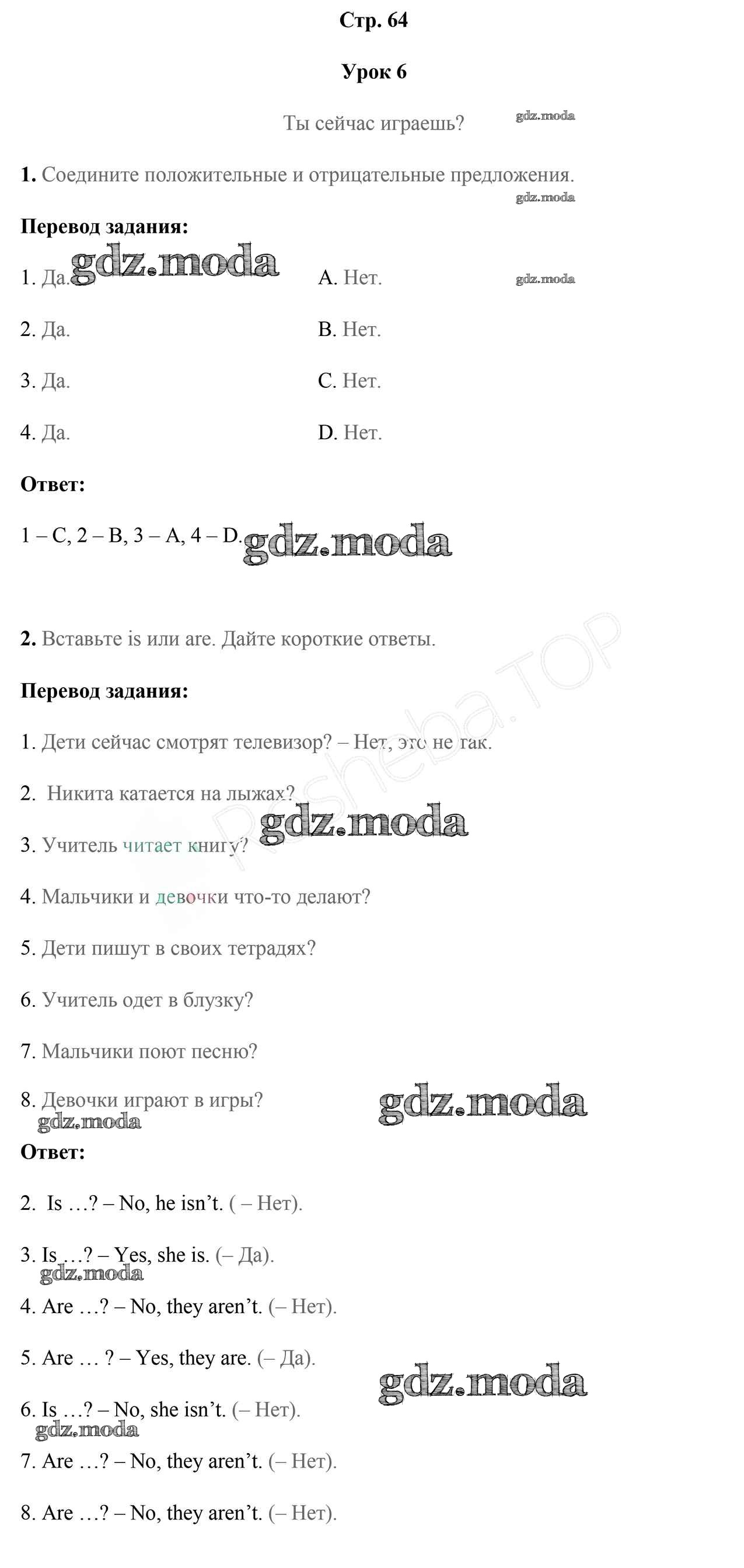 ГДЗ решение к заданию № 64 Английский язык 4 класс рабочая тетрадь Лапицкая Л.М. Аверсэв 2019 Часть 1, Часть 2 ФГОС бесплатно на гдз.мода!