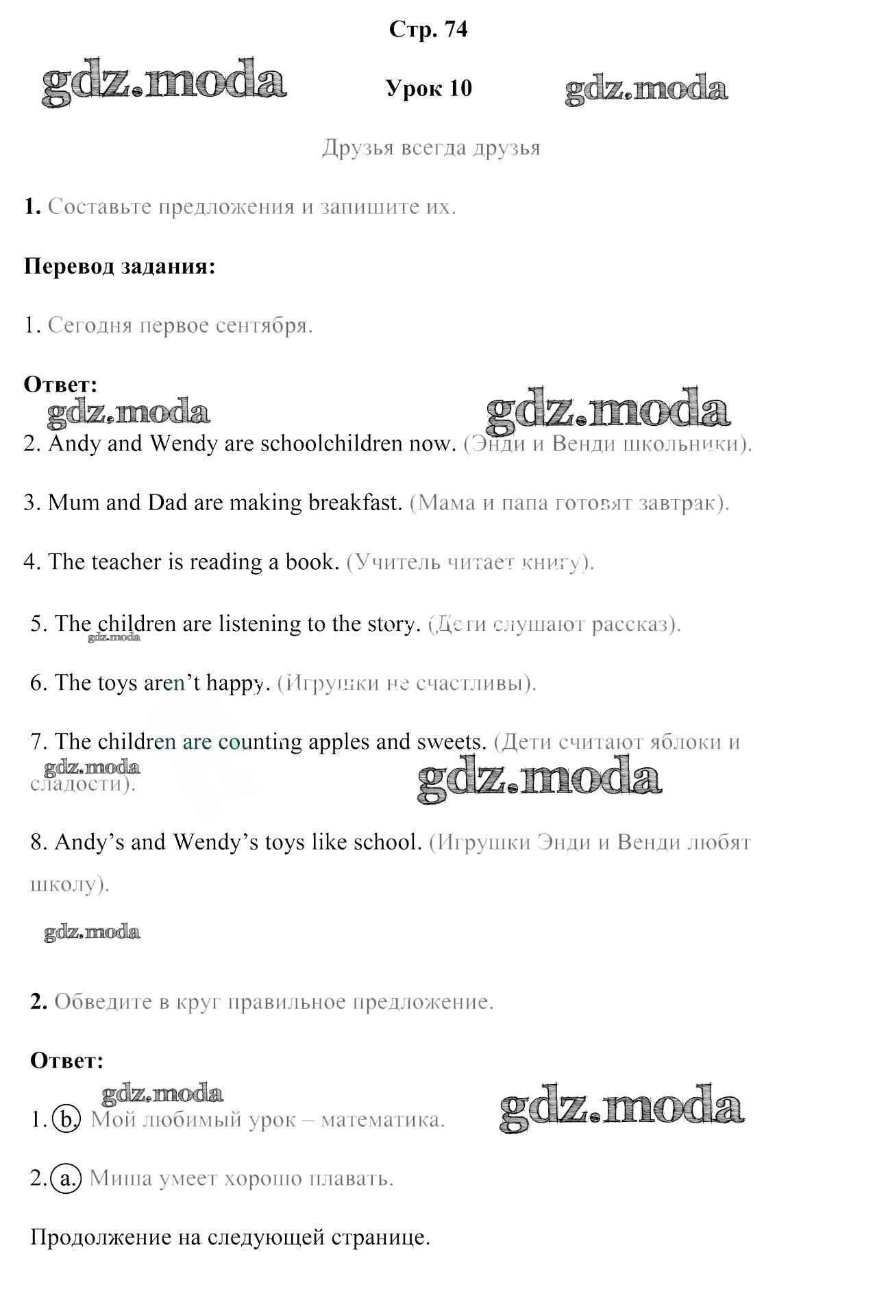 ГДЗ решение к заданию № 74 Английский язык 4 класс рабочая тетрадь Лапицкая Л.М. Аверсэв 2019 Часть 1, Часть 2 ФГОС бесплатно на гдз.мода!