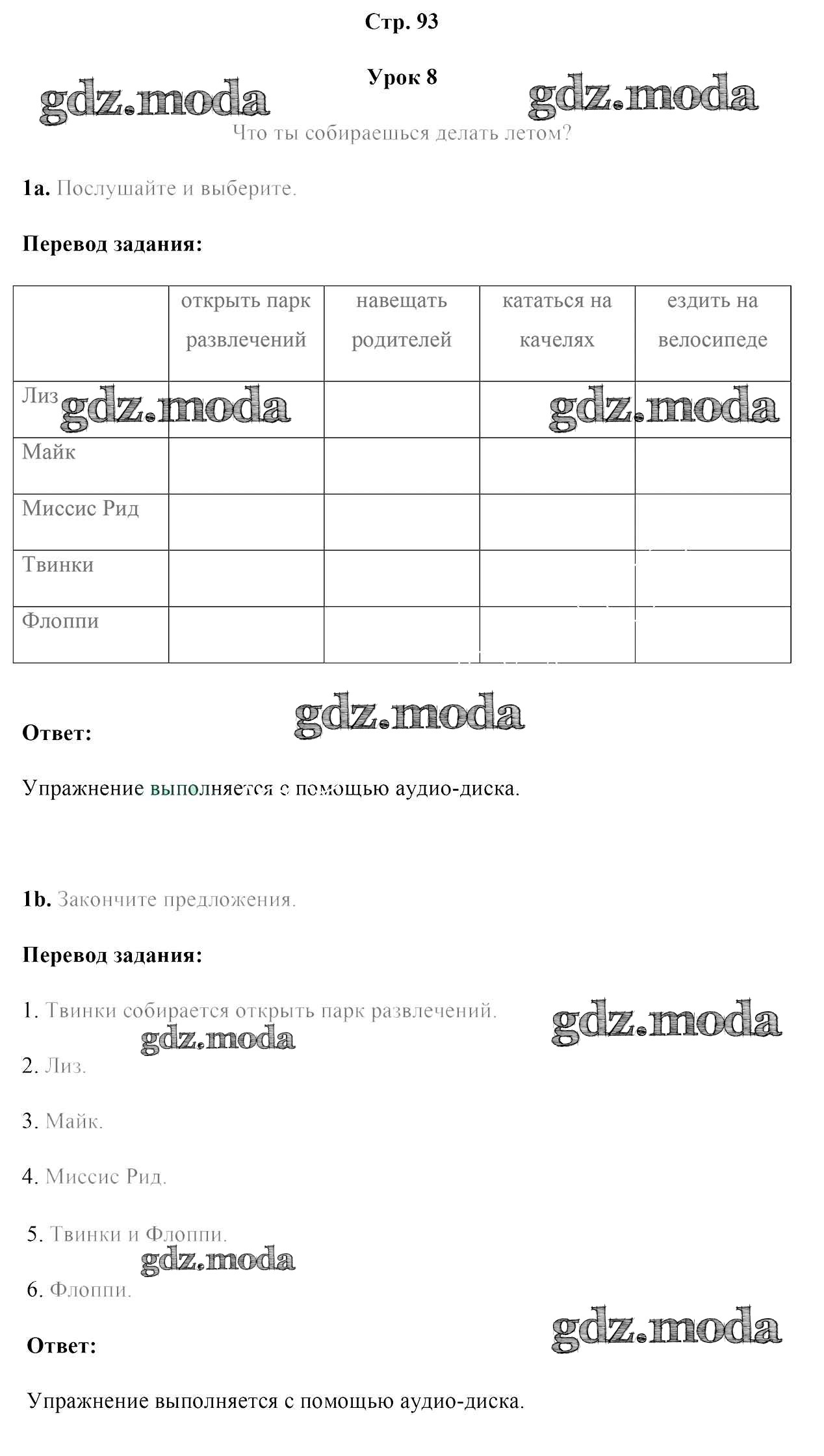 ГДЗ решение к заданию № 93 Английский язык 4 класс рабочая тетрадь Лапицкая Л.М. Аверсэв 2019 Часть 1, Часть 2 ФГОС бесплатно на гдз.мода!