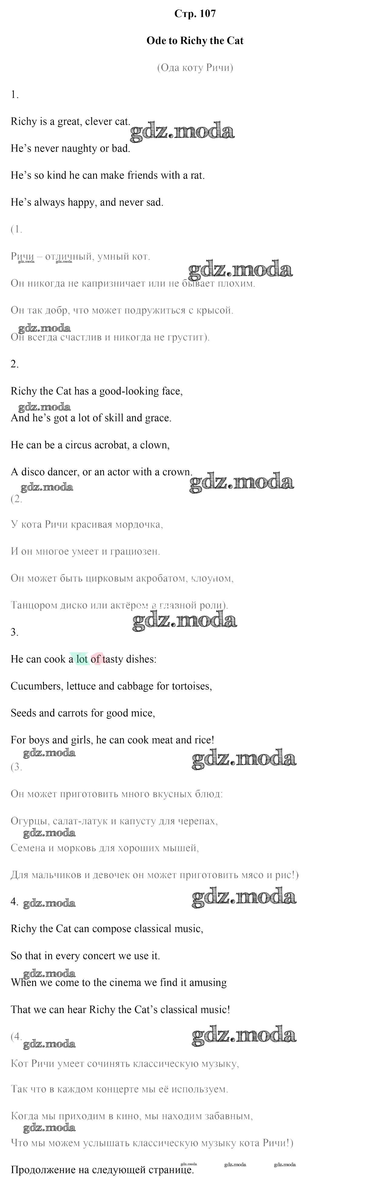 ОТВЕТ на задание № 107 Учебник по Английскому языку 4 класс Лапицкая