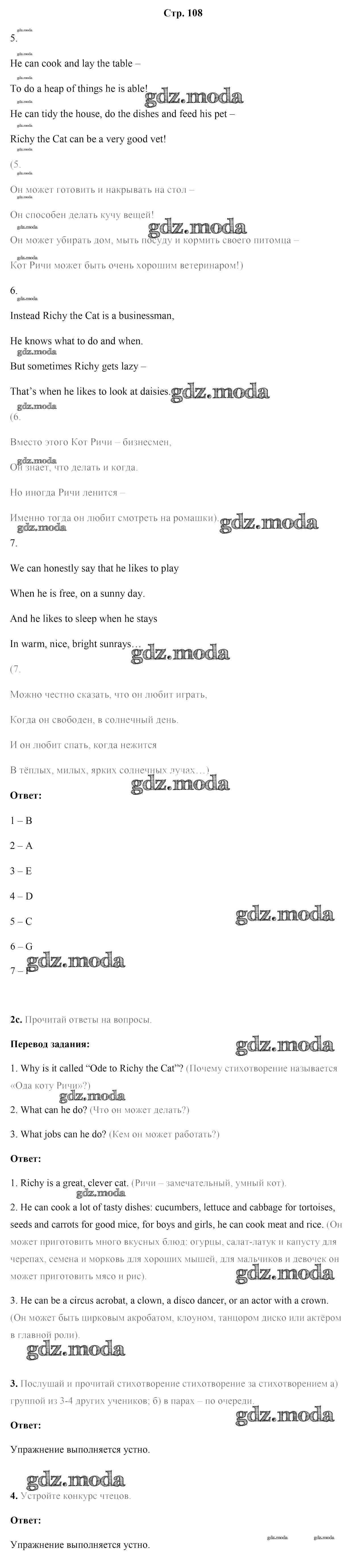 ГДЗ решение к заданию № 108 Английский язык 4 класс Лапицкая Л.М. Высшая школа 2019 Часть 1, Часть 2 ФГОС бесплатно на гдз.мода!