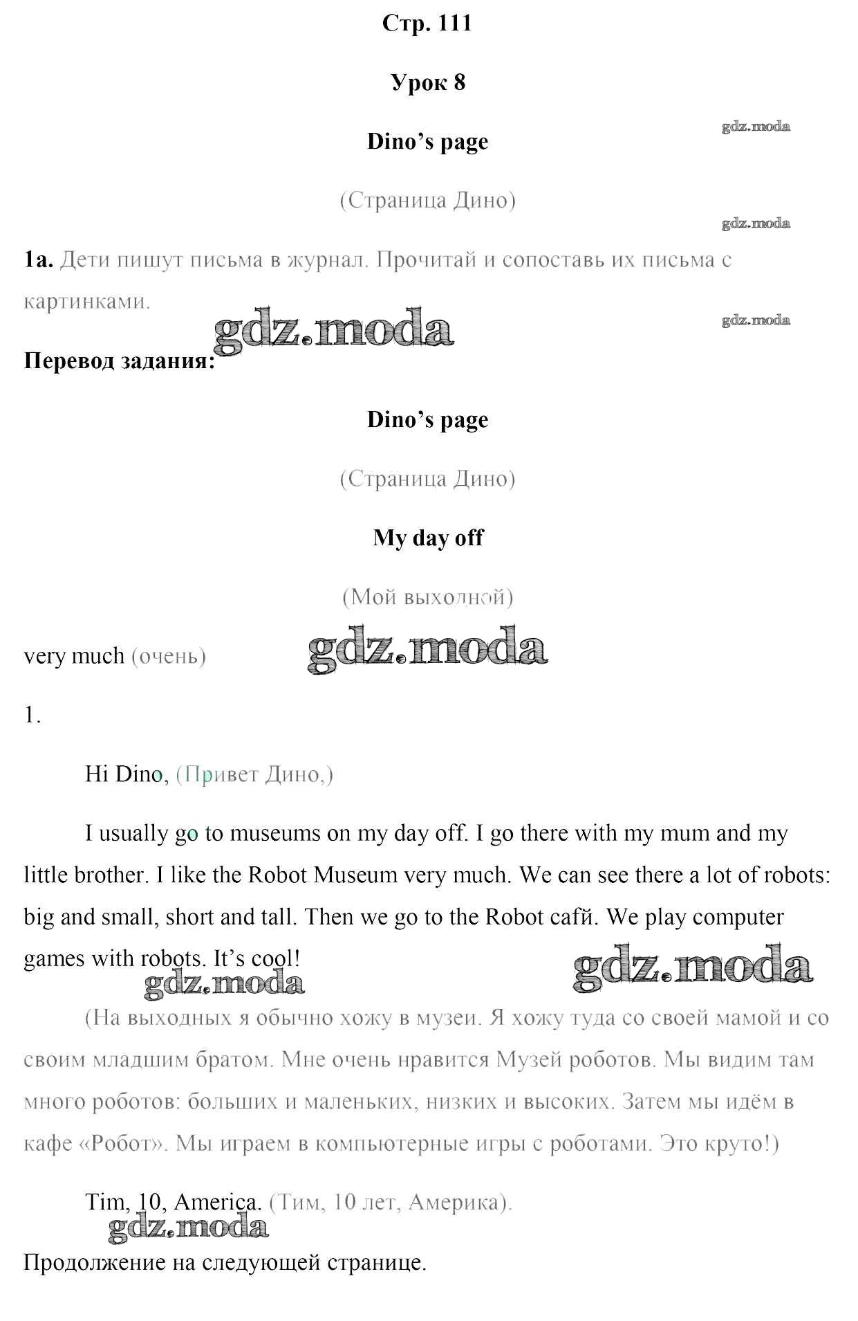 ОТВЕТ на задание № 111 Учебник по Английскому языку 4 класс Лапицкая
